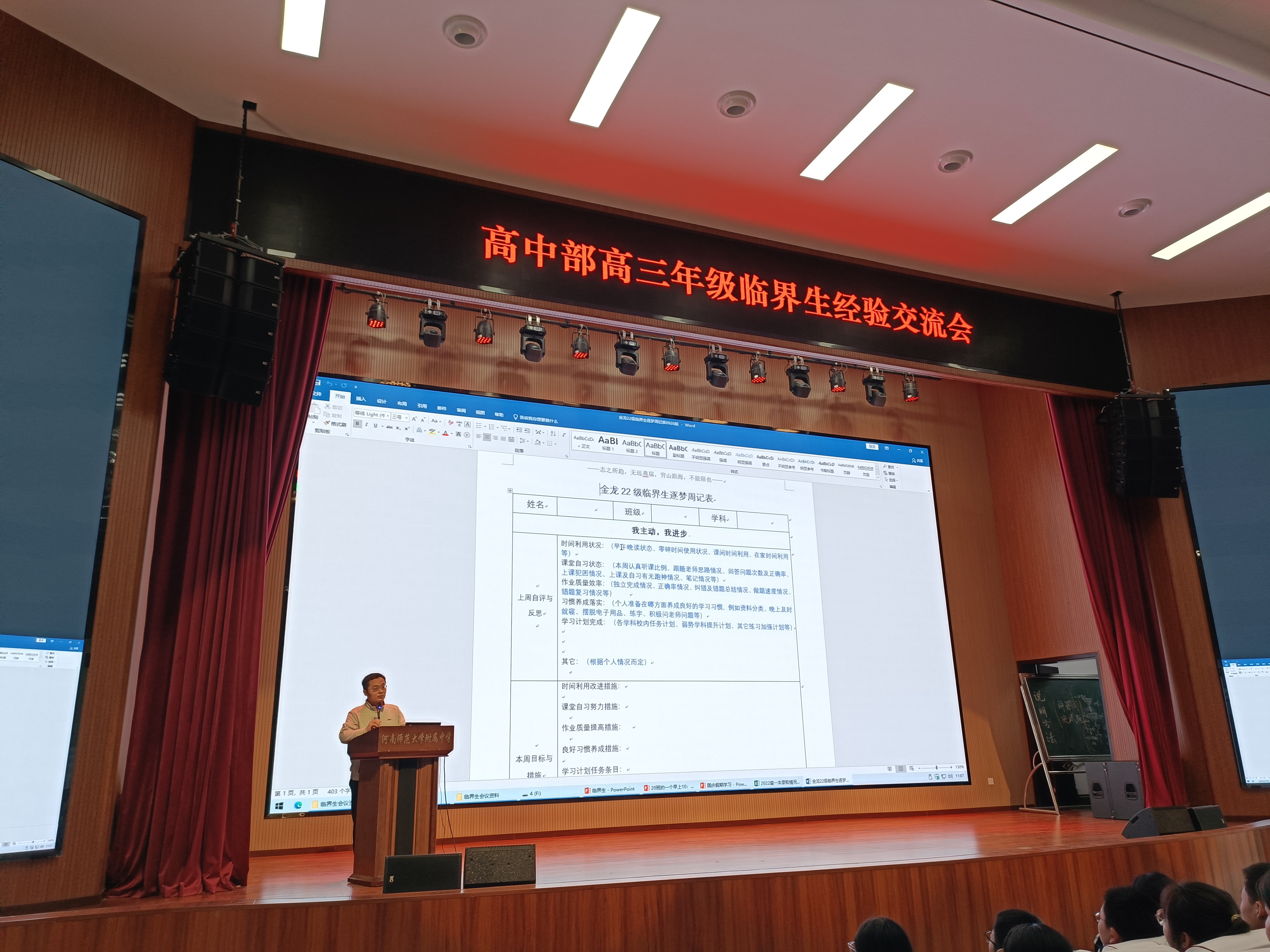 临界生的成功转化直接关系整体本科上线人数,为了让学生在总复习中达到一个最佳状态,能最大程度发挥他们的潜力,考出最优成绩,各班临界生齐聚道德讲堂召开了经验分享交流会,并邀请了目前就读于河南师范大学生命科学学院的2022届毕业生李铮然做经验分享,本次交流会由年级主任刘长杰主持。