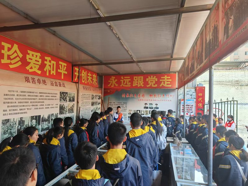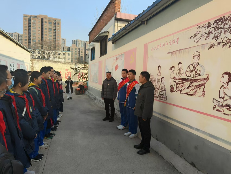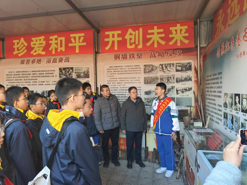 在“一二九运动”和“国家公祭日”到来之际,为进一步强化广大师生“勿忘国耻,警钟长鸣”的思想意识,充分发挥校外思政辅导员思想引领作用,12月7日,我校组织开展了“‘传承红色基因 争做强国少年’主题暨展馆里的思政课”校外实践活动,校党委副书记、纪委书记、工会主席刘齐晋,校团委副书记陈文甫带队,与初二年级党员教师、班主任和学生代表共同走进耿风泉抗战实物展览馆,现场聆听红色故事,同上思政课。