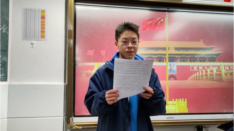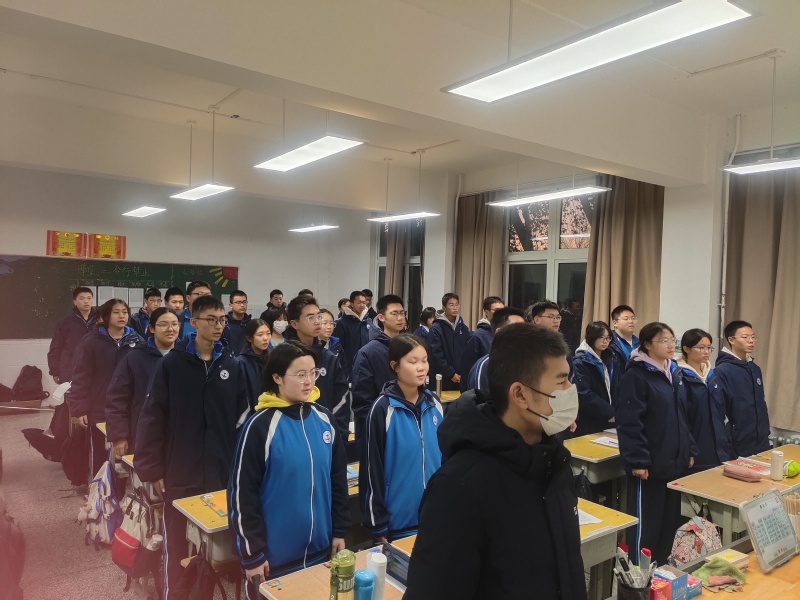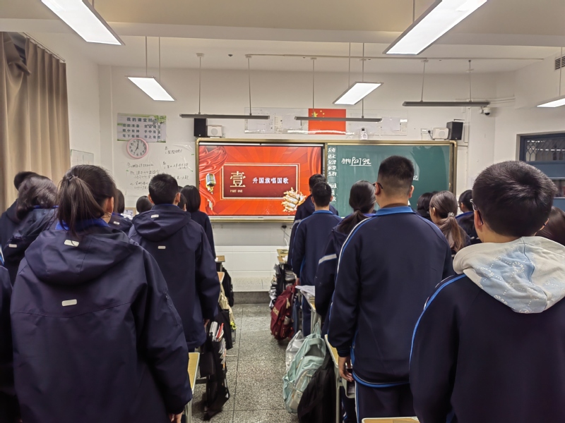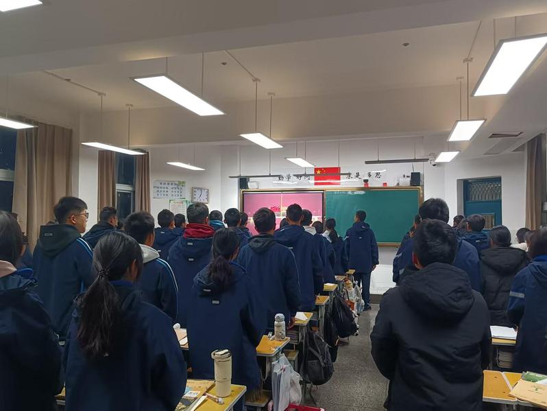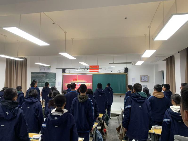 12月16日,高一年级全体学生齐聚教室,举行了庄严的升旗仪式。