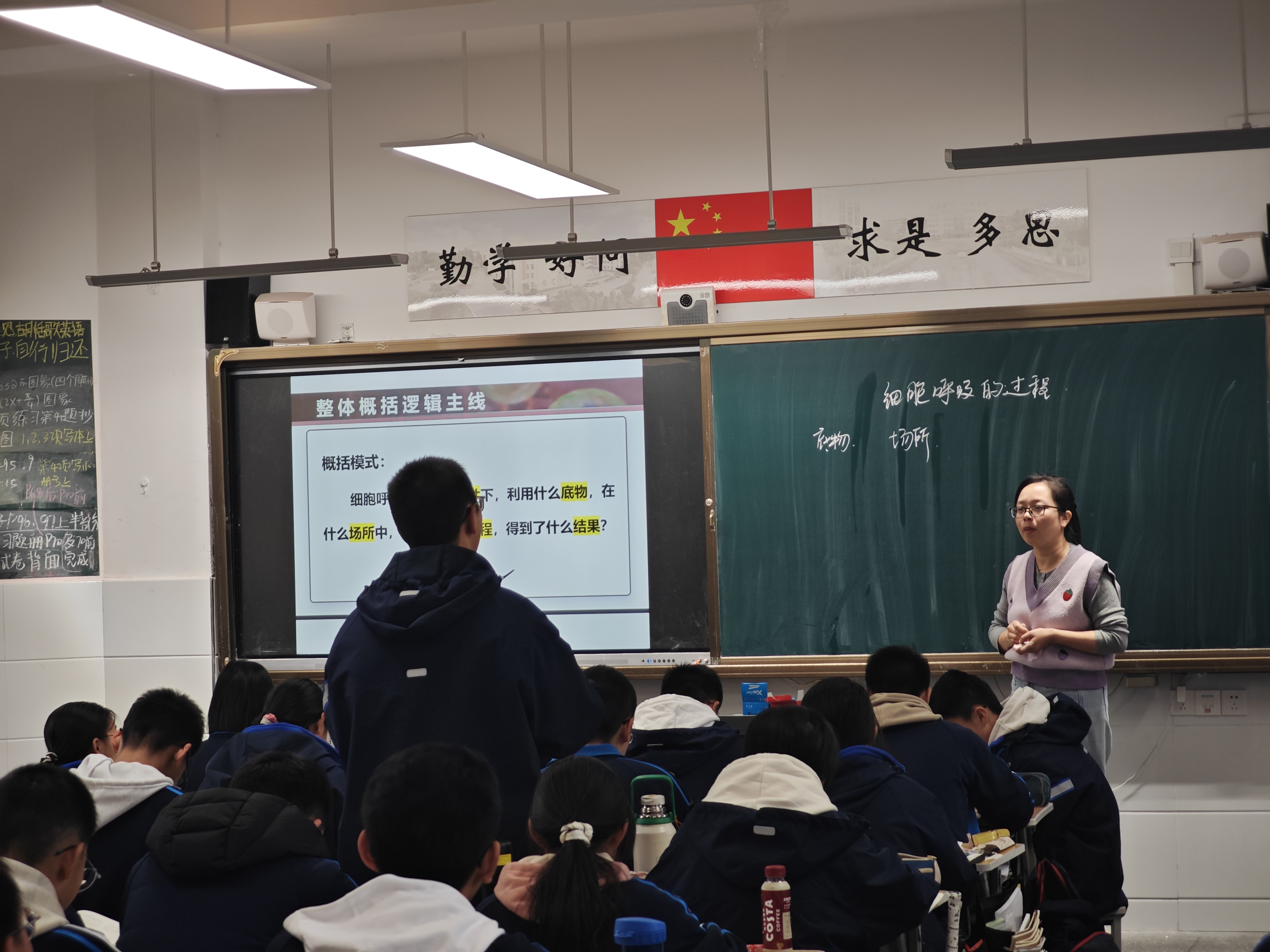 首先,林琳老师在2417班展示了《细胞呼吸的过程》一课。课堂分为预学、共学和研学三个环节进行。林琳老师注重激发学生的学习自主性,让学生在课前通过多种方式自主探索细胞呼吸相关内容,提高自主学习能力。在共学环节,为更好地铺垫和理解细胞呼吸,林琳老师通过固定编组和机动混合编组合作等方式,让学生带着问题去交流学习内容,让学生学会倾听、分享、质疑和评价。