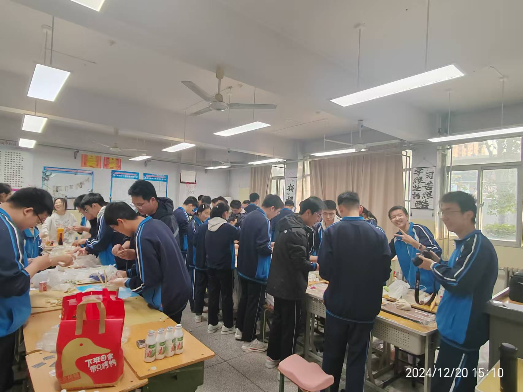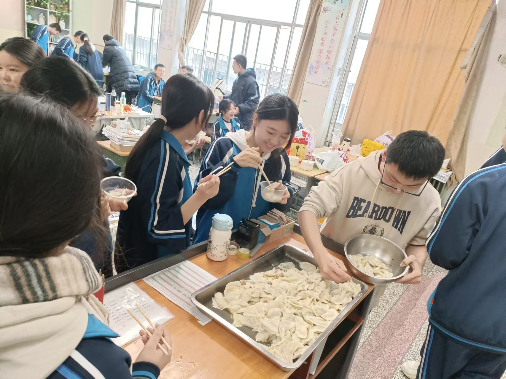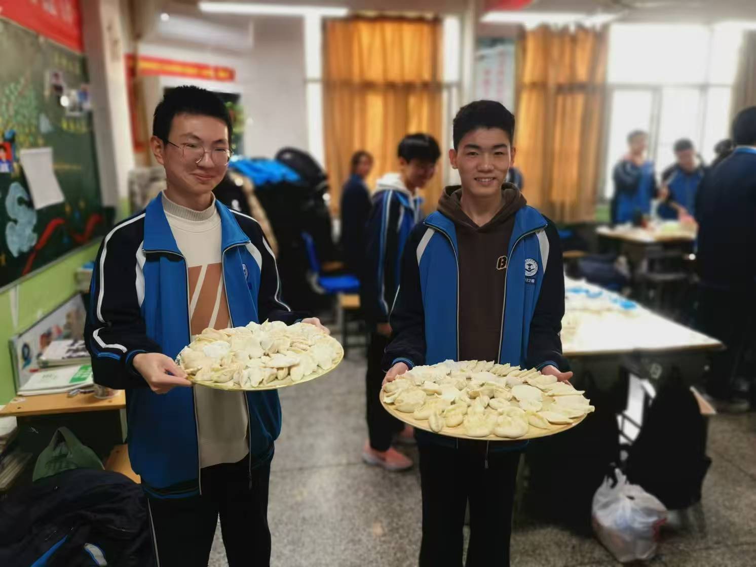 “天时人事日相催,冬至阳生春又来。”时序更迭,岁月流转,又是一年冬至时。冬至既是二十四节气中一个重要的节气,也是中国民间的传统祭祖节日。为进一步弘扬民俗文化,丰富校园生活,缓解备考压力,增进家长、教师和学生之间的情感,凝聚育人合力,我校高中部高三年级于12月20日下午,以各班为单位开展冬至包饺子活动。本次活动由高三年级统筹安排,宿膳服务中心大力协助。