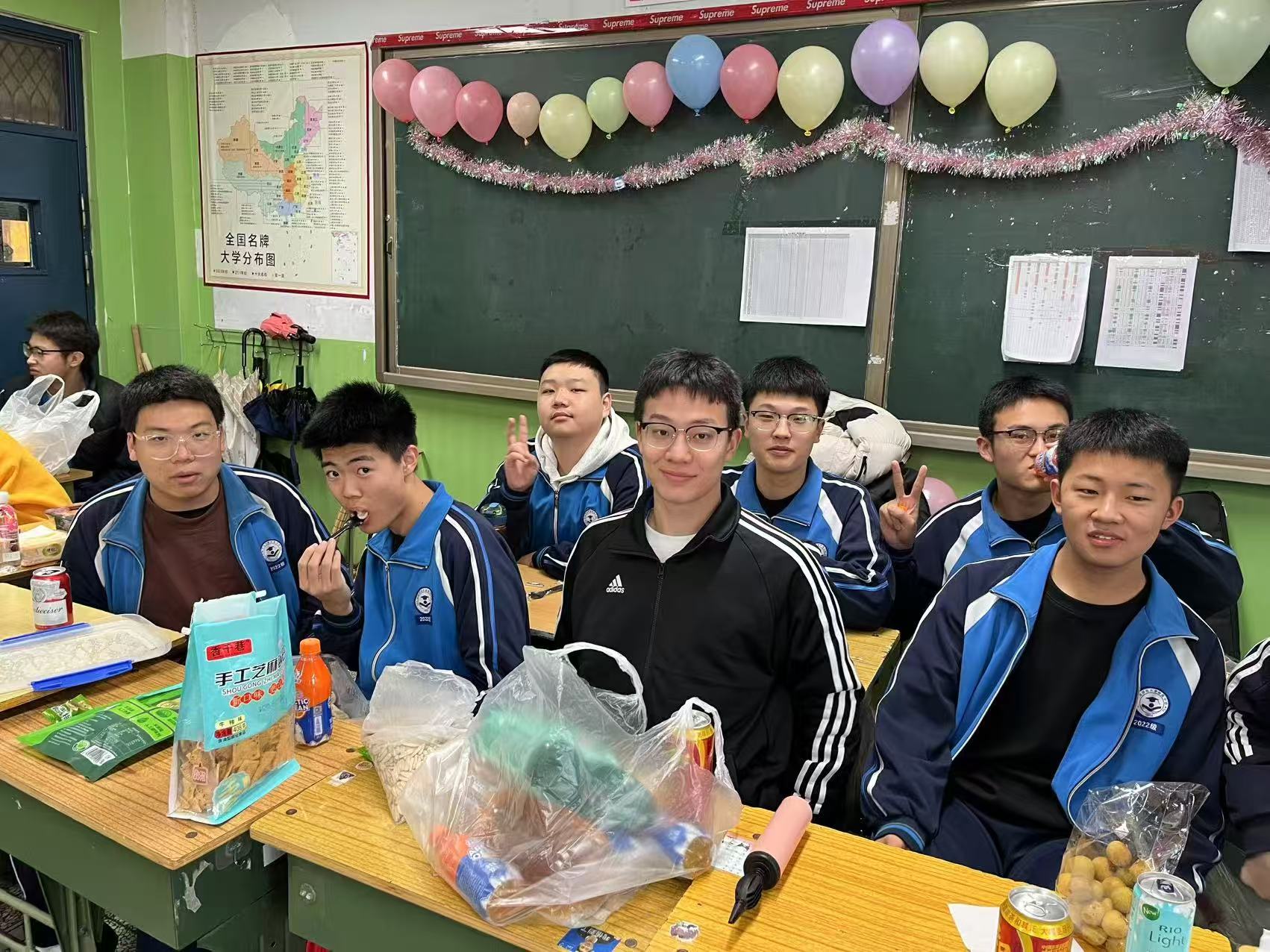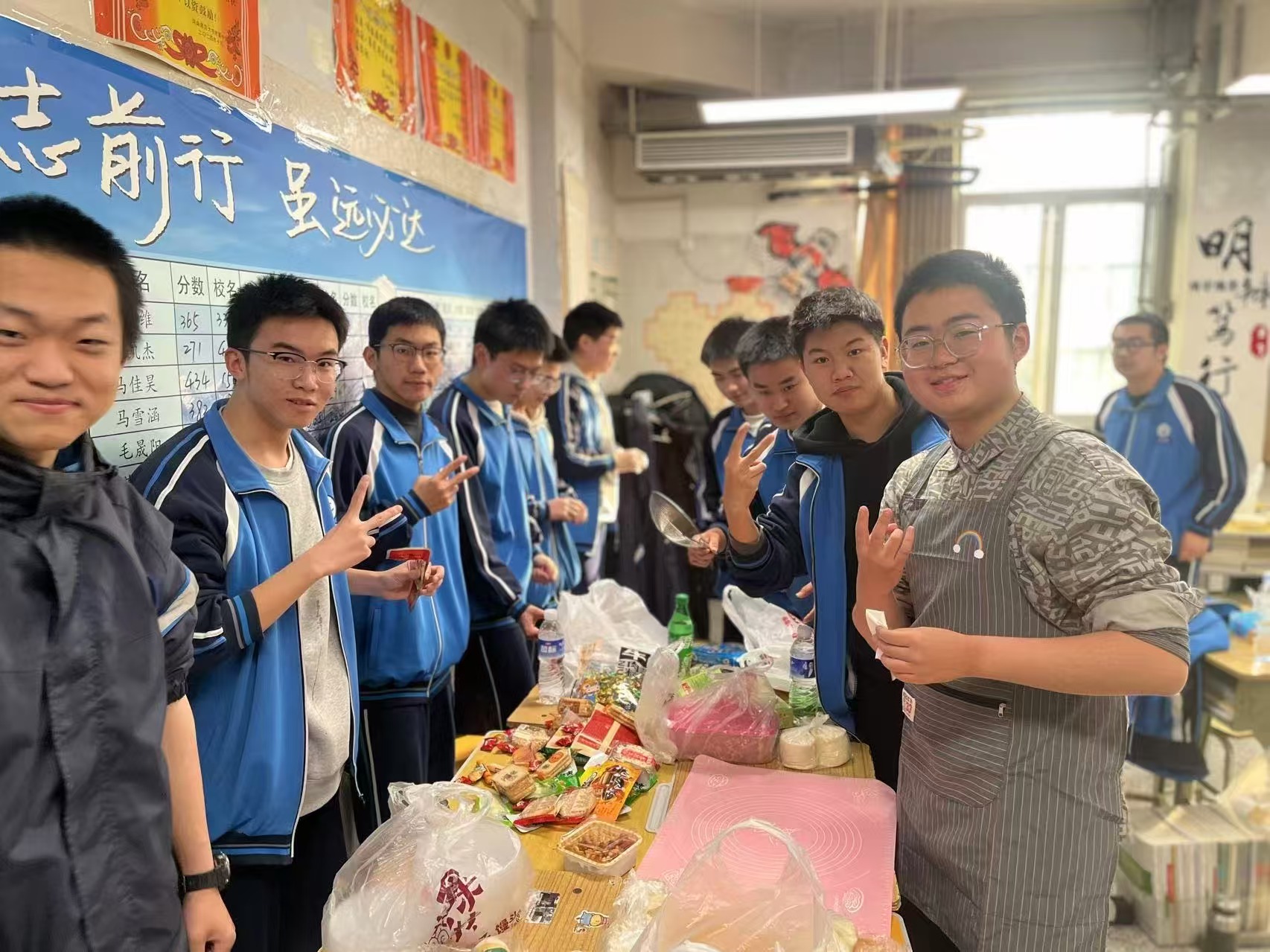 活动准备阶段,各班小组成员分工协作,自带食材和物品。活动现场,同学们围坐在一起,面皮与馅料在他们手中巧妙变身。虽手法各异,生疏不同,但每位同学脸上都洋溢着认真和喜悦。随后,各班同学把包好的饺子送到学生餐厅后厨进行加工,一盘盘热腾腾的饺子完美出炉。同学们品尝着自己亲手包的饺子,脸上洋溢着自豪与满足。有的班级还精心准备了才艺表演和趣味游戏,同学们尽情参与其中,高三备考的压力在此刻轻松愉快的氛围中暂得释放。