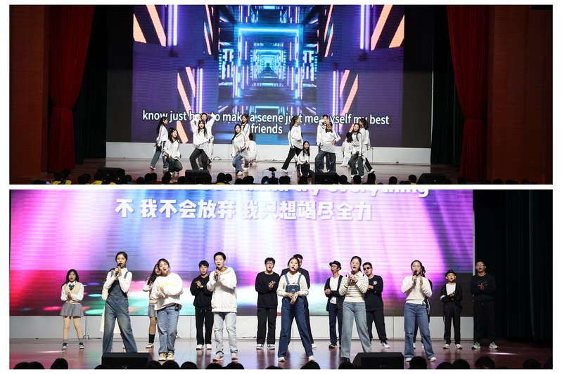 在英文歌曲串烧环节中,初二年级学生自编自导,将一首首经典的英文歌曲改编成优美、欢快、青春、动人的旋律,深深感染着在场师生,将活动不断推向高潮。
