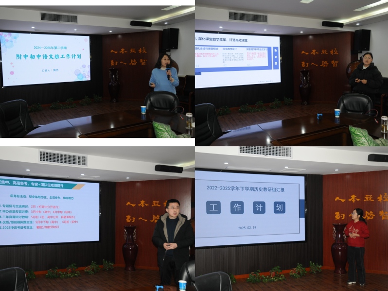 会议伊始,各教研组长依次汇报了新学期教研工作计划。从常规的教学安排到中高考备考策略,再到五大学科竞赛的组织与指导,内容详实、规划周全。各学科组结合自身特点,分享了一系列具有针对性的教学方案,力求在新学期帮助学生提升学业成绩,在各类竞赛中取得优异成绩。