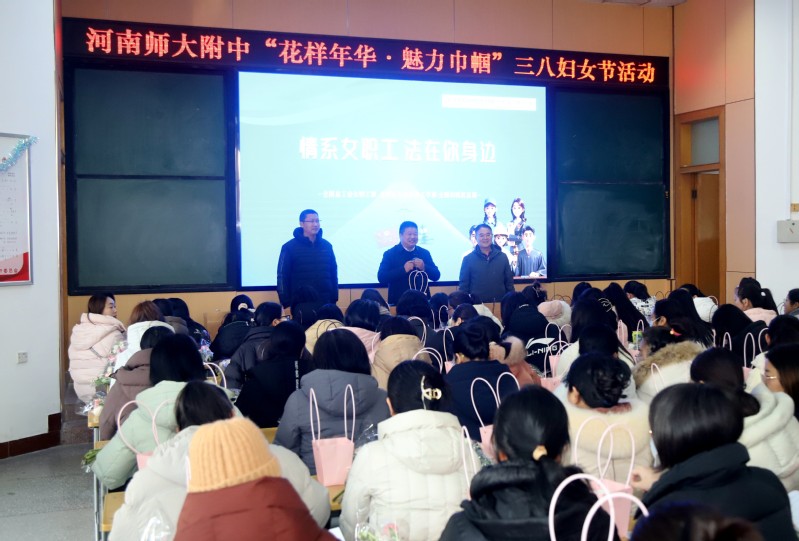 春意盎然的三月,在第115个国际劳动妇女节来临之际,为营造尊重、关爱女性的校园氛围,丰富女教职工精神文化生活,激励女教职工立足岗位、建功立业,校工会精心策划并组织开展了以“花样年华·魅力巾帼”为主题的系列活动,并于近日在阶梯教室举办法治学习与艺术实践相结合的专场活动,向全校女教职工送上节日祝福。校长李杰明,校党委副书记、纪委书记兼工会主席刘齐晋,校工会副主席周士锋和校工会委员出席本次活动,全校女教职工共同参与,现场氛围热烈温馨。活动由校工会女工委员郭芳主持。