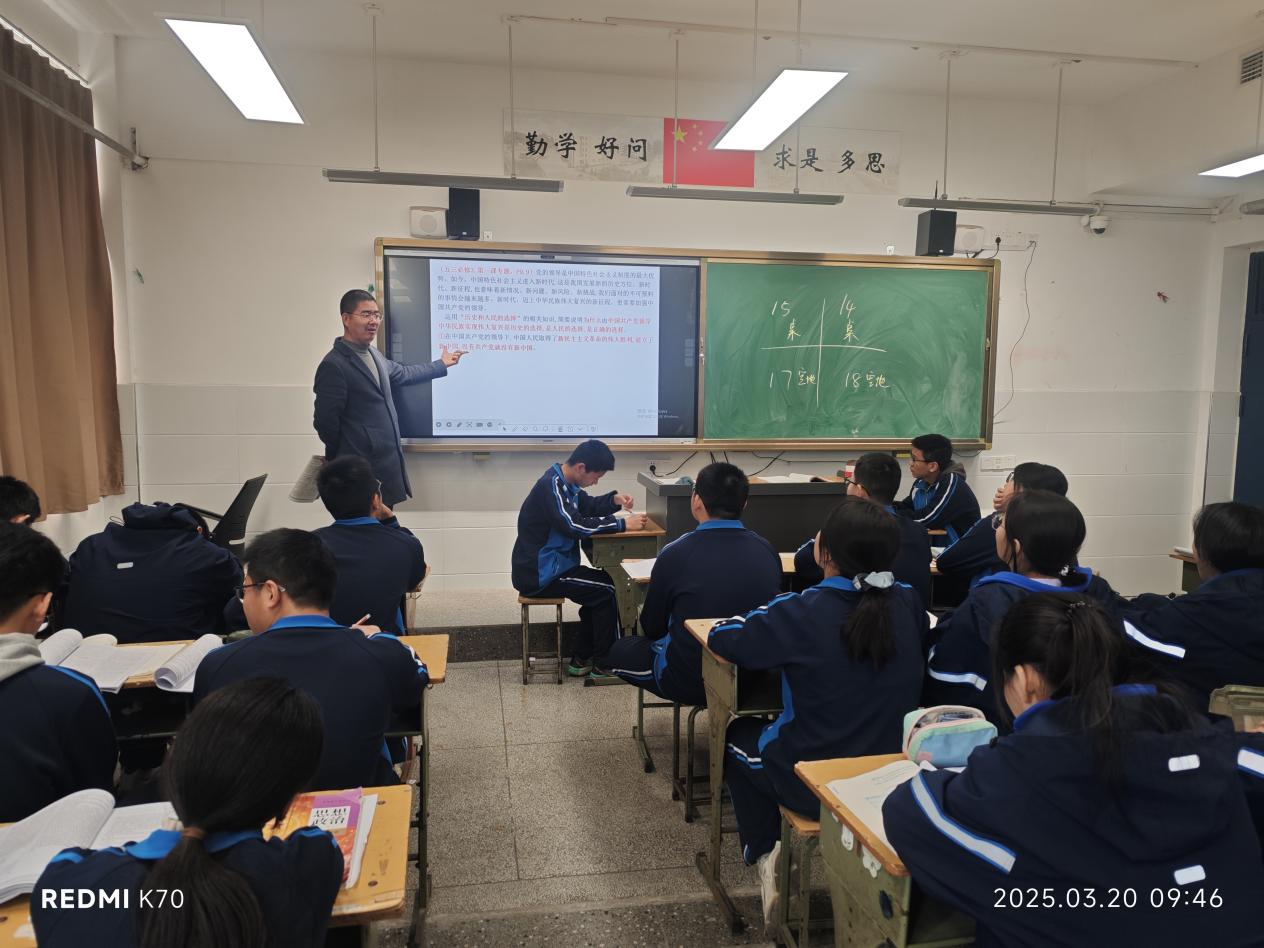 为加强教学管理,打造高效课堂,提升教学质量,3月20日,副校长陈景任和高中部主任刘毅来到高一年级,随机推门听取了2425班郝武敬老师的政治课。本节课内容为政治第一单元考前复习课,校领导全程认真聆听,详细记录,并在课后与授课教师及备课组进行了深入研讨。