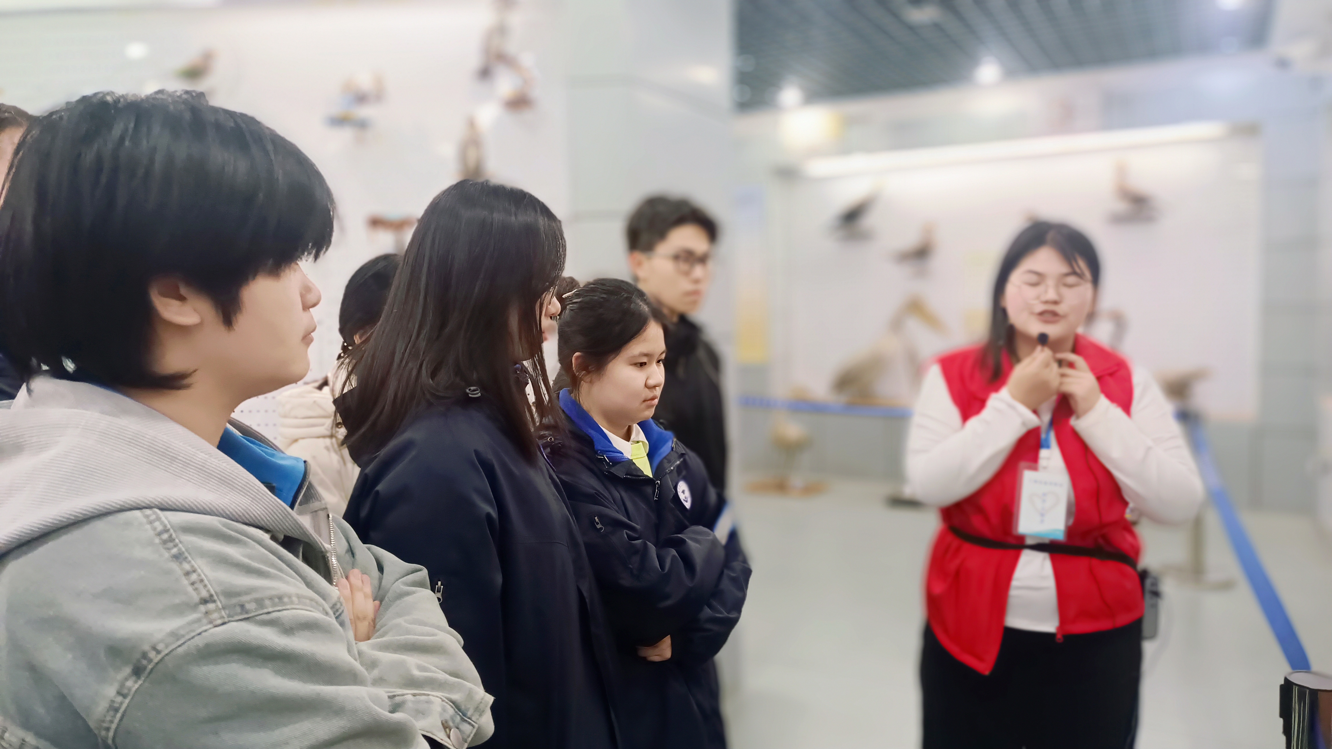 河南师范大学生物资源博物馆就像一个浓缩的自然世界,在这里,同学们可以近距离观察各种动物标本,从美丽的蝴蝶到栩栩如生的鸟类标本,从奇特的昆虫到神秘的海洋生物,每一件标本都承载着生命的奥秘,等待着同学们去探索和发现。本次参观也安排了丰富的互动环节,专业讲解员带领同学们深入了解标本背后的故事,解读生物进化的奥秘。讲解员风趣幽默,伴随着趣味问答,同学们热情高涨,在轻松愉快的氛围中拓展学生知识面,提升科学素养。