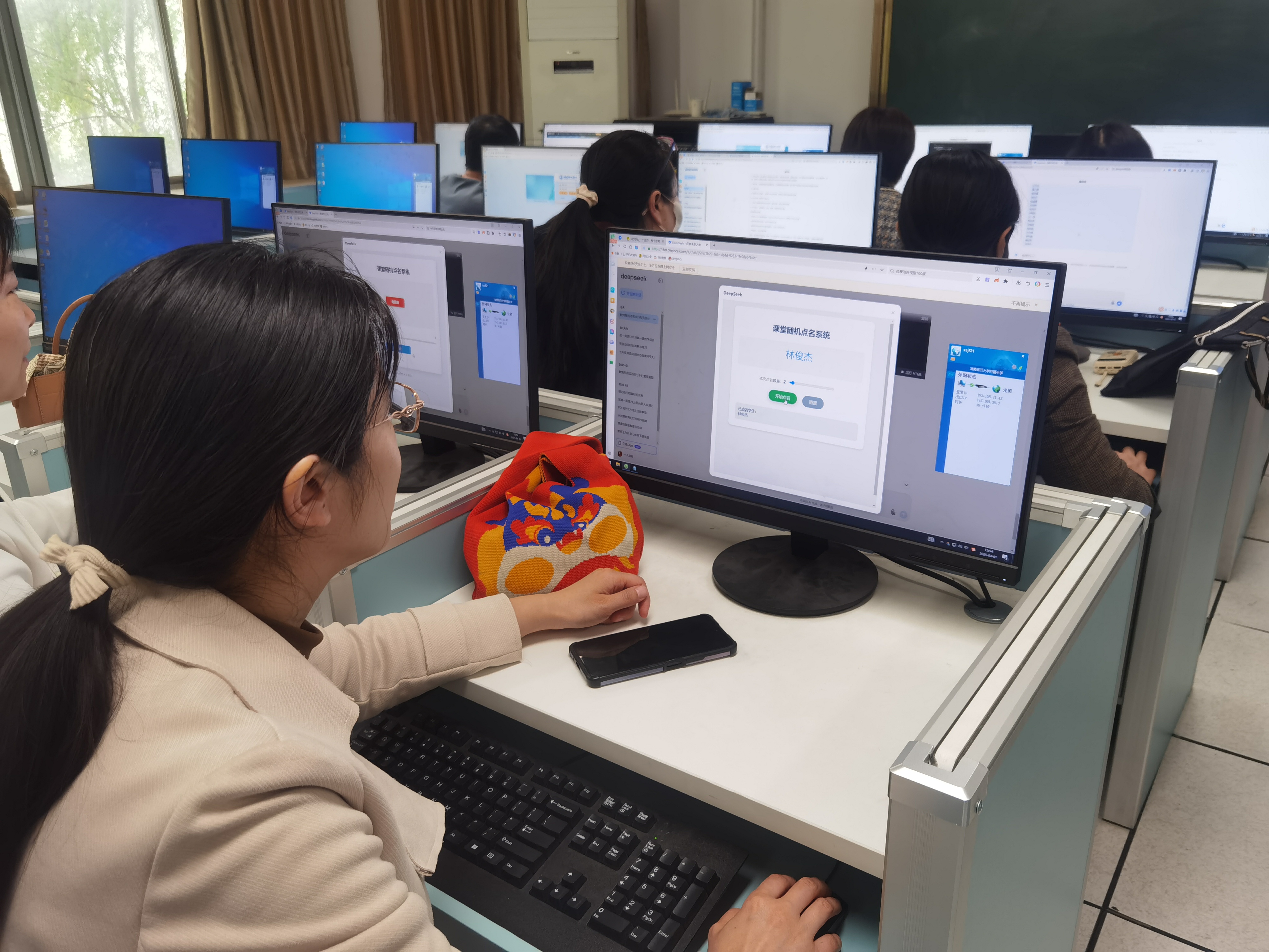 在实操演示环节,教师们借助DeepSeek生成课堂交互程序。该程序以需求为导向开发,支持课堂随机点名、答题、随堂测验等数字化功能。教师们还结合各学科教学实际对程序加以修改,实现其在课堂授课中的应用。