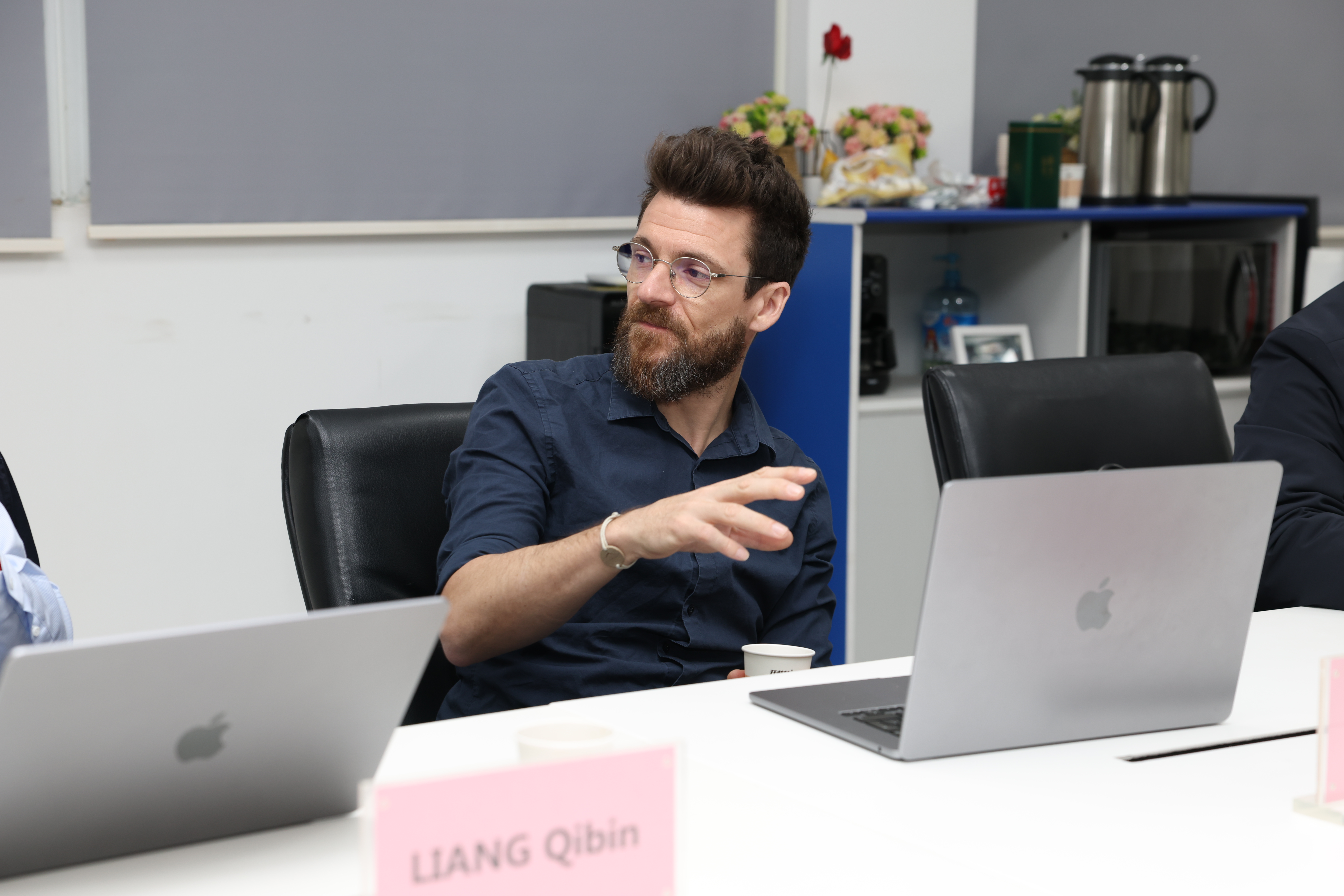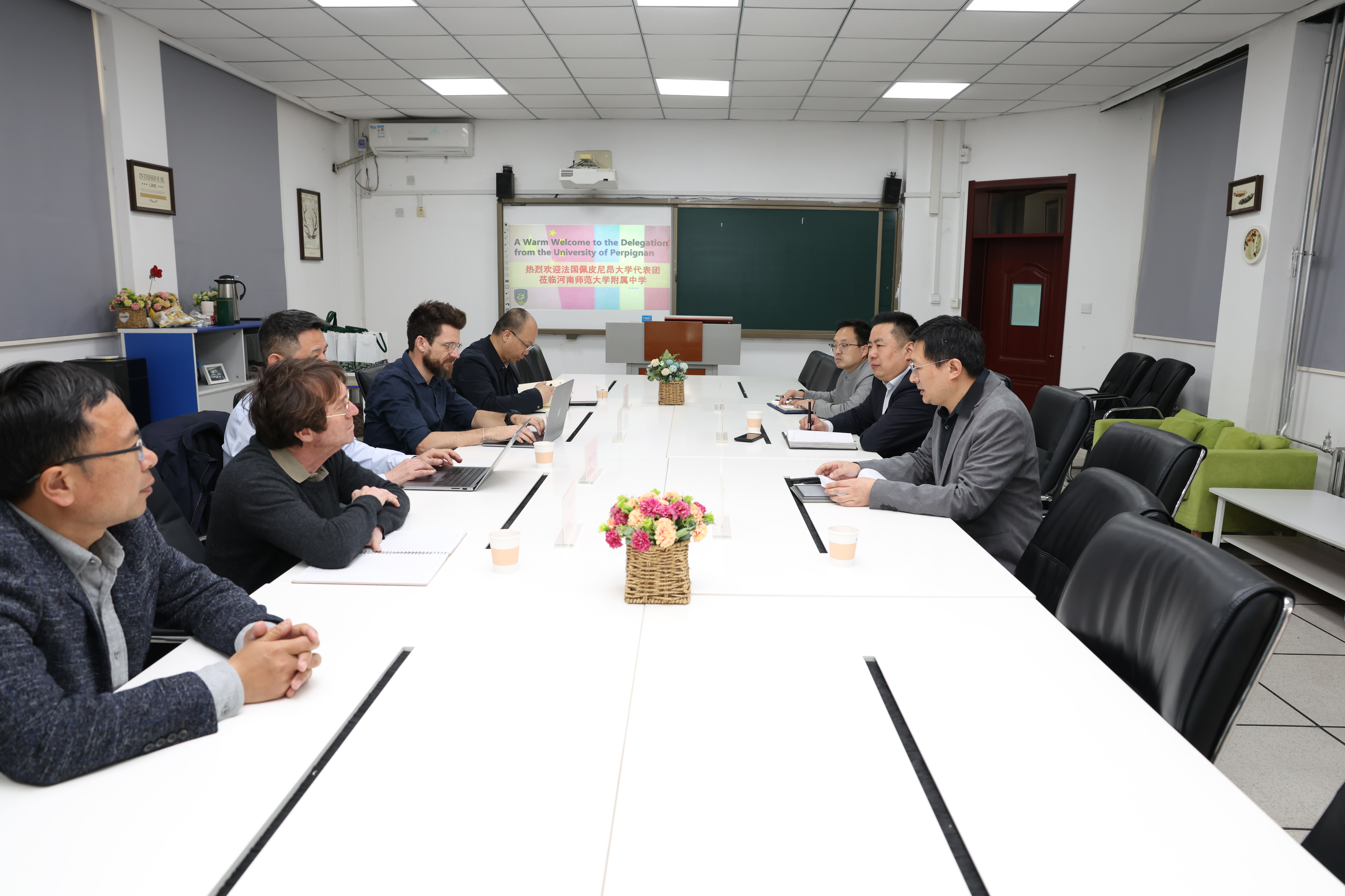 3月26日,法国佩皮尼昂大学代表团到我校参观访问,开展友好交流活动。代表团成员包括佩皮尼昂大学精密与实验科学学院院长Frédérik Thiery、数学系主任Philippe Langlois、企业管理学院Qibin LIANG,以及陪同的河南师范大学国际教育学院院长董海、副院长刘海涛。校党委书记兼河南师范大学基础教育集团办公室主任张银付、国际部副主任周睿及教师代表参加交流活动。