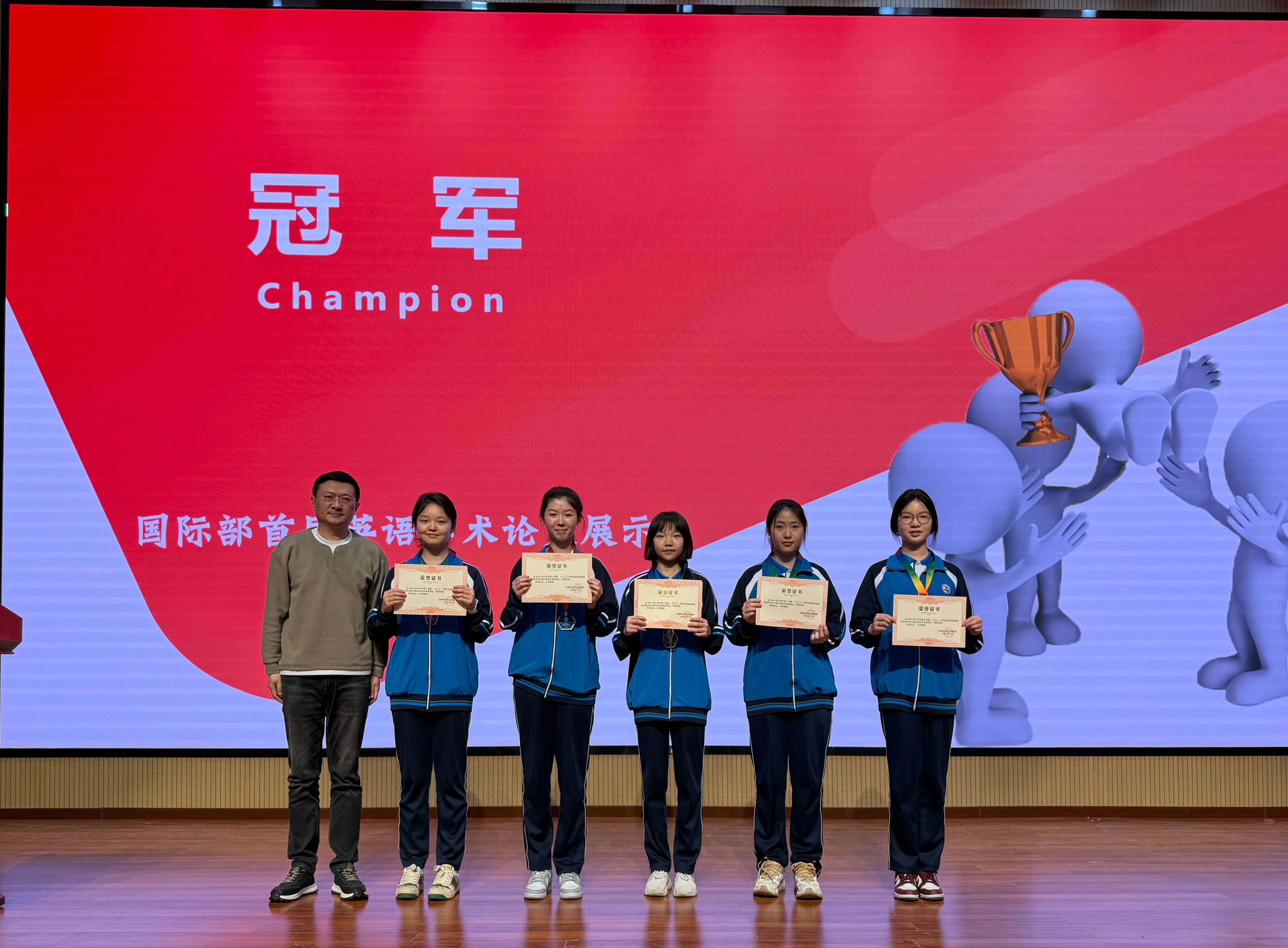 经过紧张激烈的角逐,综合论文、PPT 展示和答辩得分,各个奖项花落有主。高一欧美班凭借出色的表现荣获冠军;高一日韩、高二日韩、高三日韩、高二欧美、高三欧美班获得优胜奖。贺亦然、梁婧雲、周星曈、王书语、冀昀轩和翟亿霖等同学表现突出,荣获最佳表现奖。