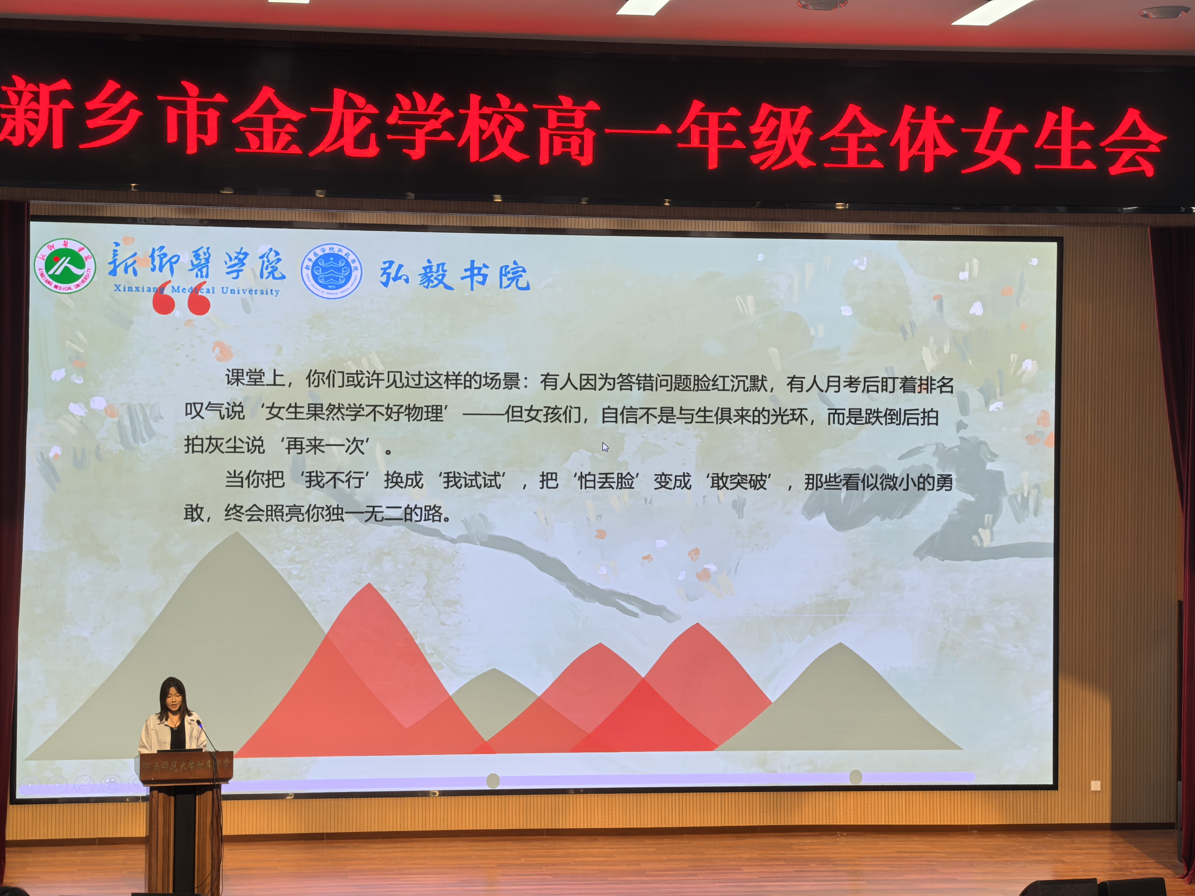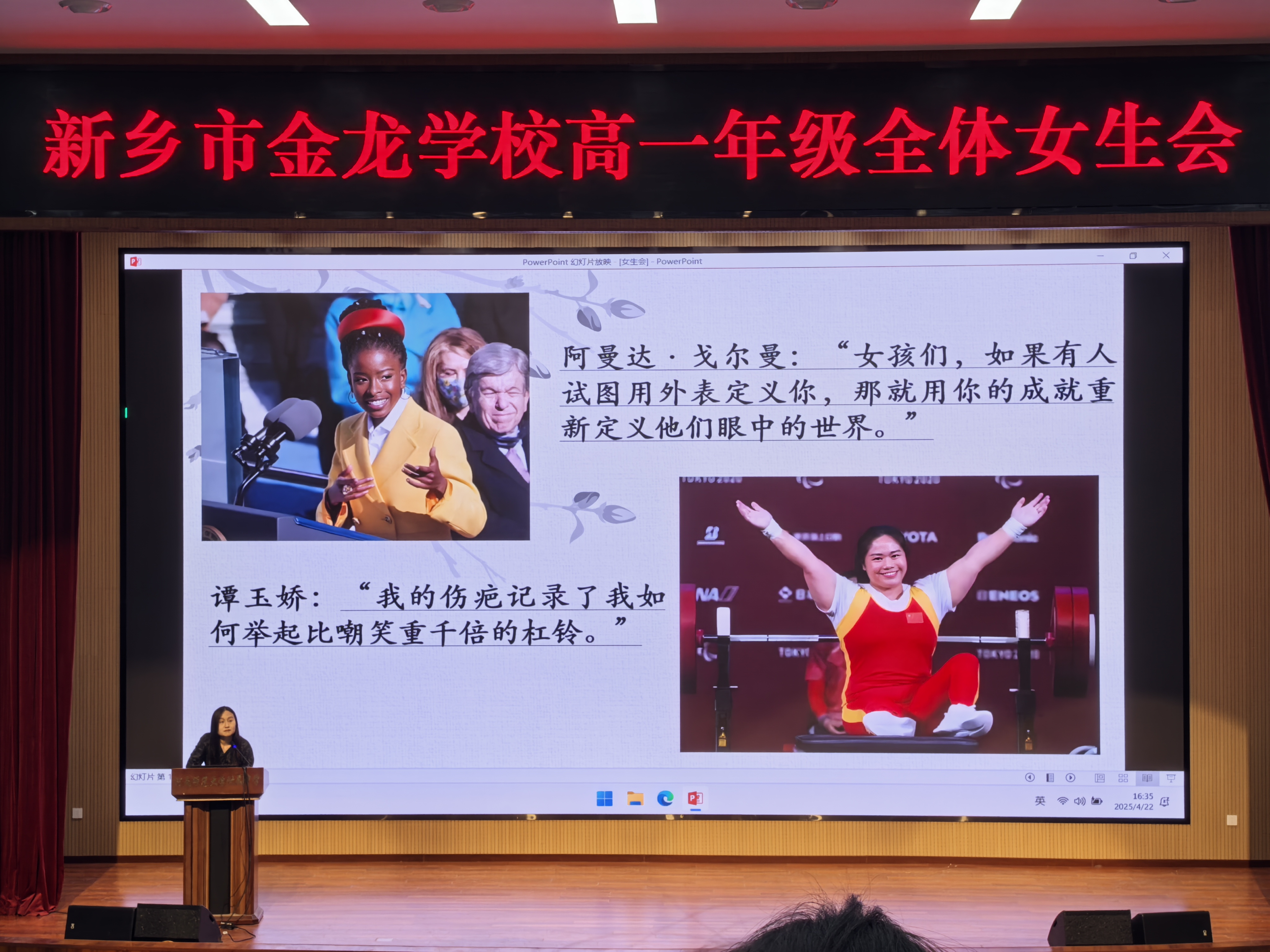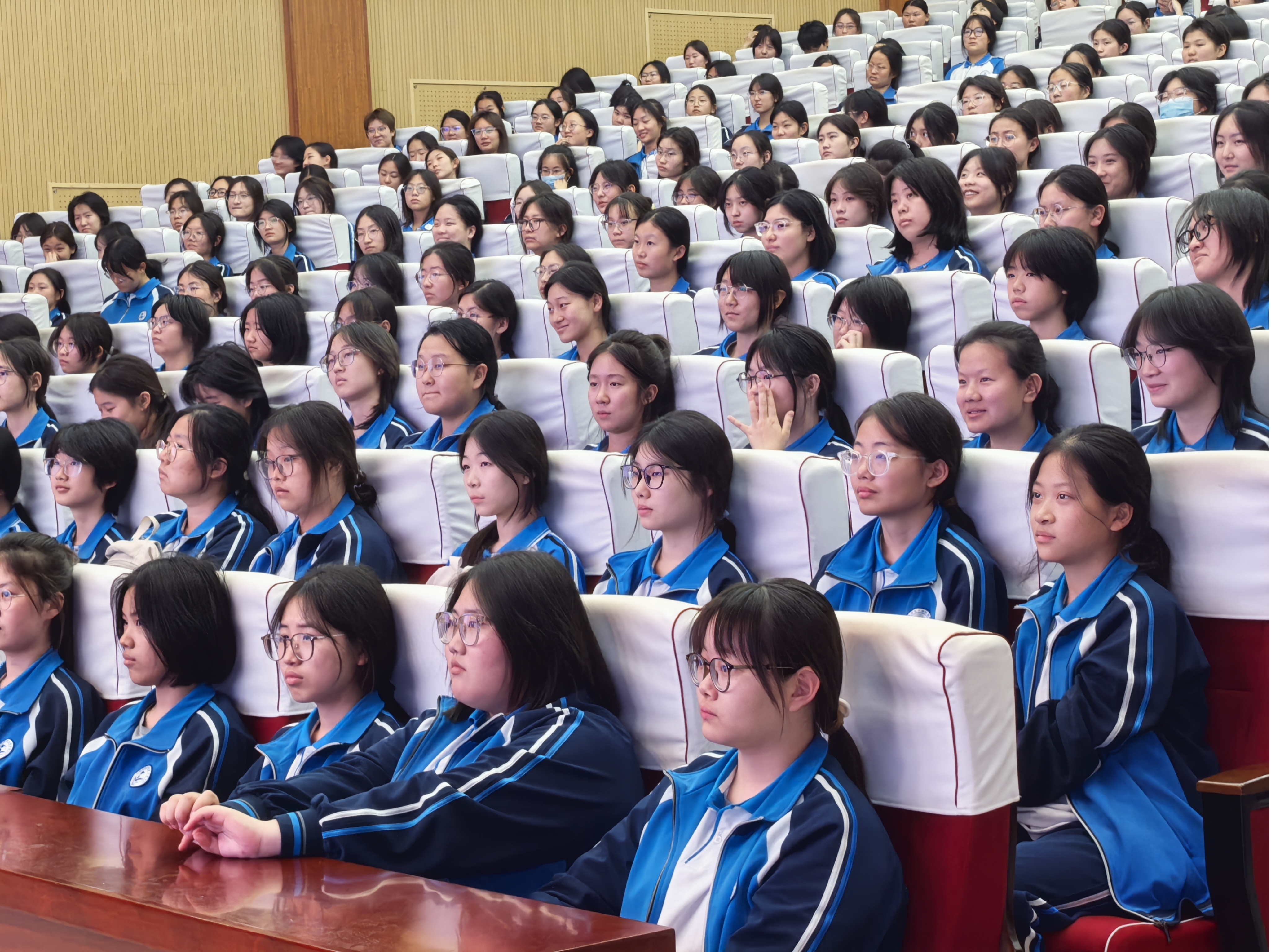 为引导高中女生树立正确价值观,助力其身心健康成长,4月22日下午,金龙高一年级在道德讲堂召开全体女生专题会议。此次会议犹如一场温暖的心灵之约,为正值青春的女生们点亮成长的明灯,全年级四百多名女生参与其中,共赴这场关于成长、梦想与自我的深度交流。
