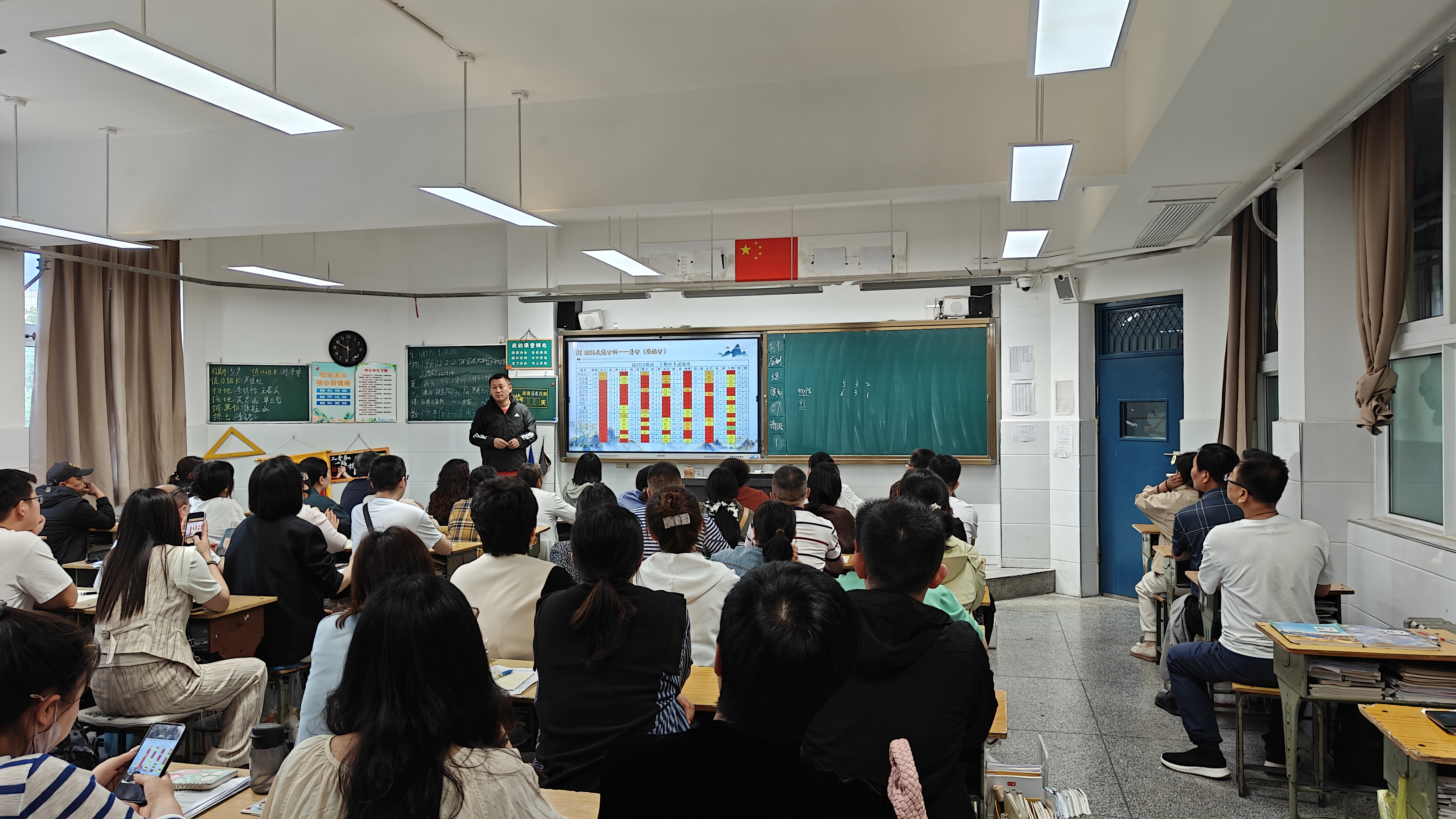 会议伊始,班主任们通过多媒体展示,以详实的数据对期中考试成绩进行全面解读。从班级平均分、学科贡献率到学生个体成长曲线,多维度的分析既肯定了班级整体稳中有进的良好态势,也精准指出了部分学生偏科、应试心态波动等薄弱环节。