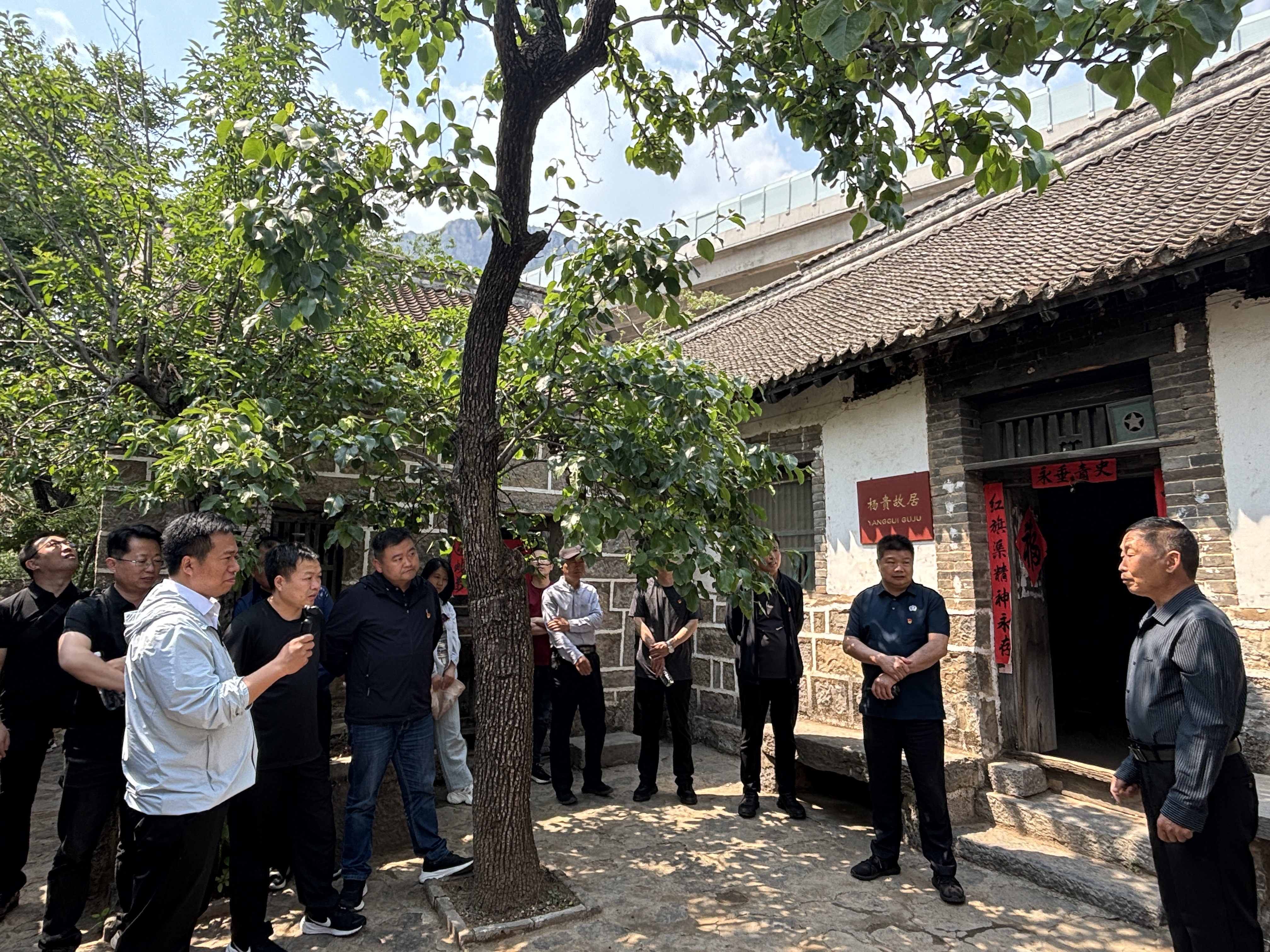 下午,全体党员来到狮豹头乡罗圈村的杨贵故居。通过实地探访、聆听村党支部书记郭清海专题讲解,深入了解这位“红旗渠总设计师”的非凡人生。斑驳的墙报、泛黄的工作笔记等珍贵史料,再现了杨贵同志带领林县人民“劈开太行山,引来漳河水”的壮阔历程,也让大家更深切体会到“自力更生、艰苦创业、团结协作、无私奉献”的红旗渠精神。