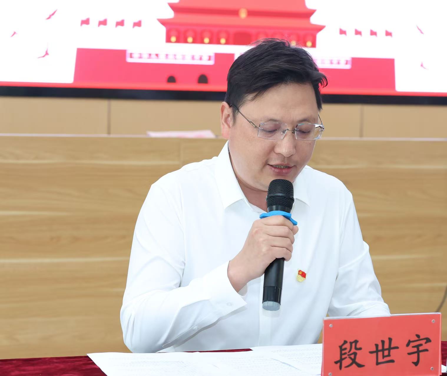 河南师范大学附属中学校长兼新乡市平原中学校长李杰明宣读中共新乡市教育局机关党委和直属单位委员会《关于新乡市平原中学进行成立党总支委员会选举工作的批复》,进一步明确了党总支成立的程序合规性及重要意义。