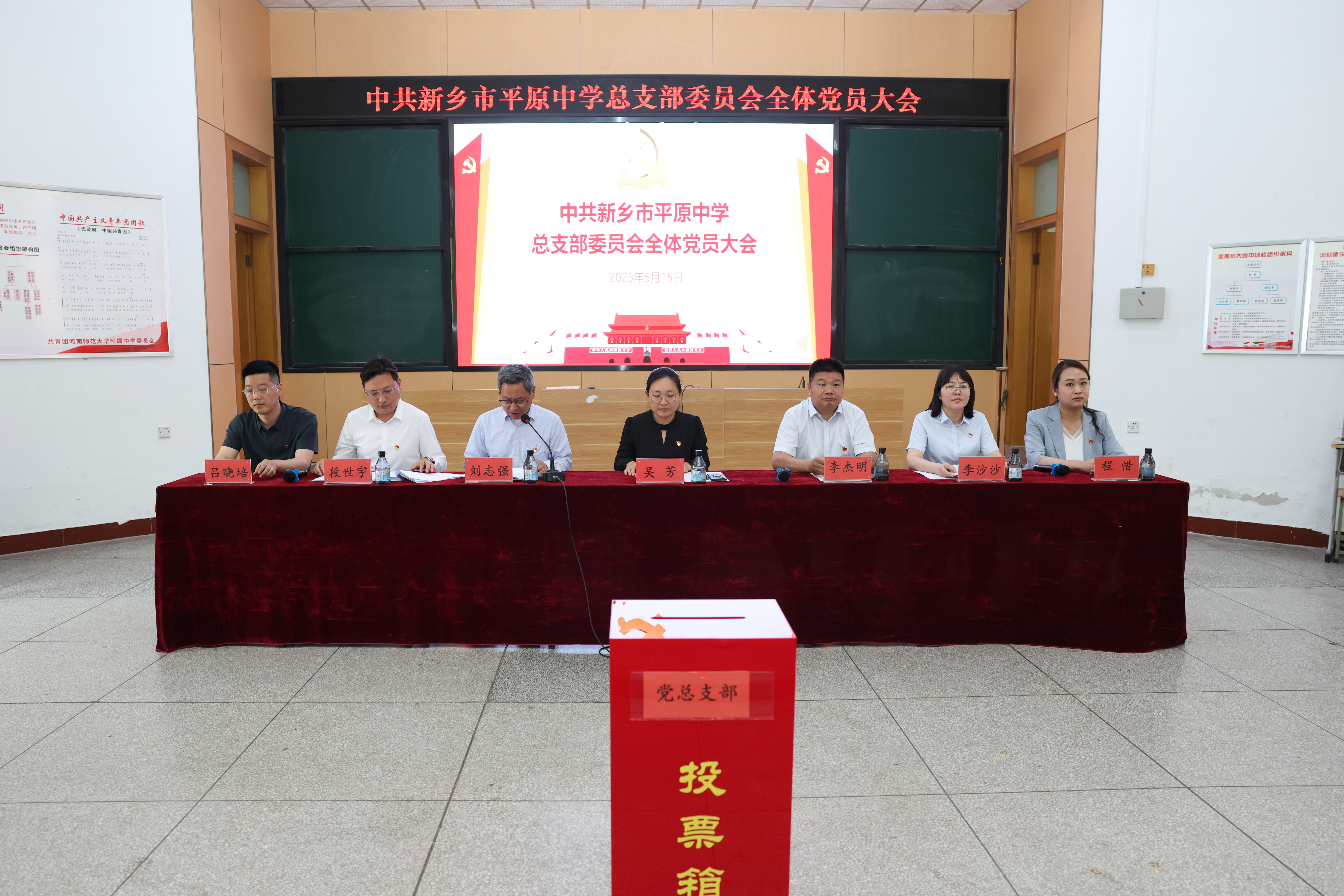 随后,中共新乡市平原中学总支部委员会委员召开第一次全体会议。刘志强当选新乡市平原中学党总支书记,段世宇当选组织委员,程惜当选宣传委员,李沙沙当选纪检委员,吕晓培当选统战委员兼青年委员。选举结果按规定上报党委审批。