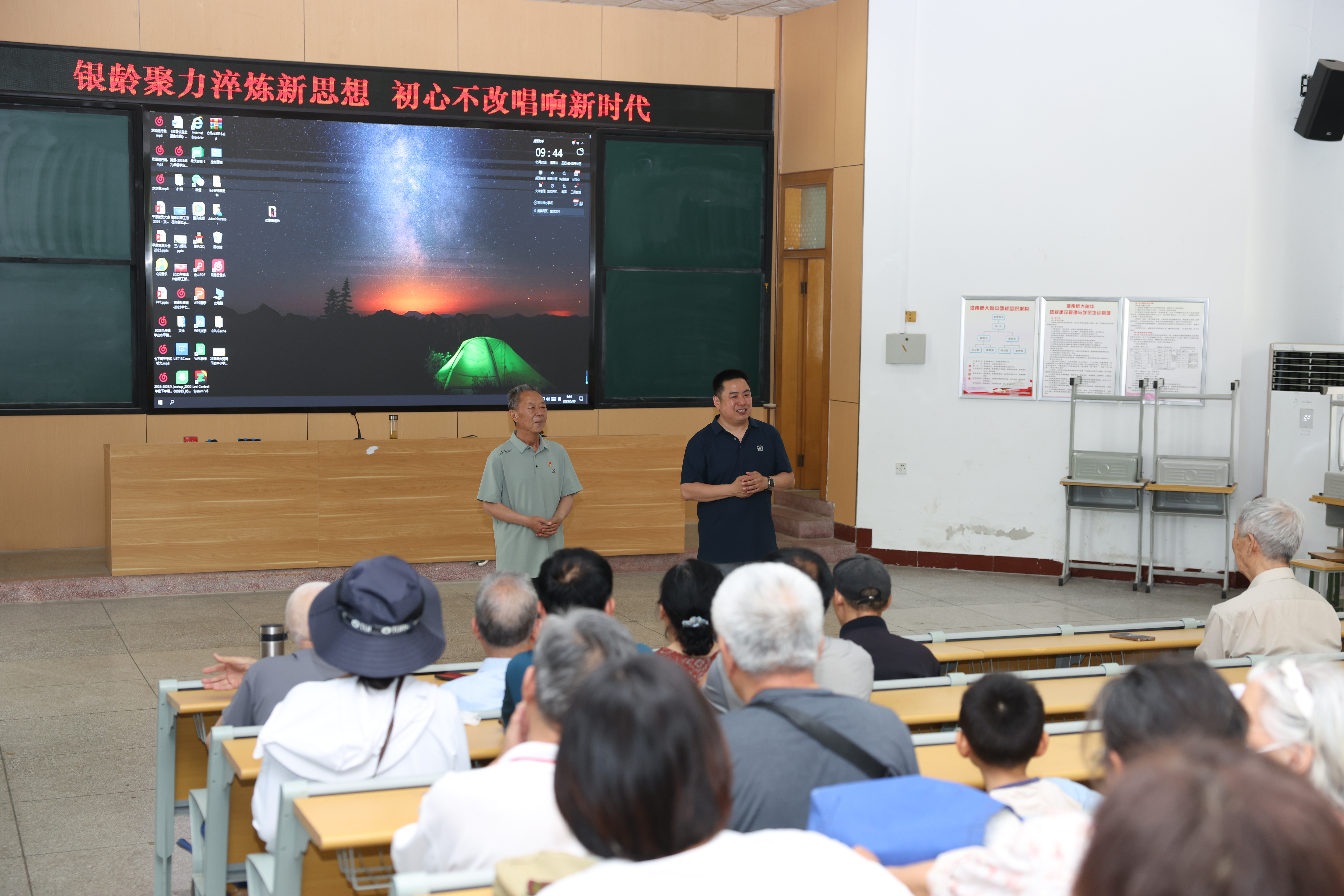报告开始前,离退休党支部书记余保刚带领全体人员齐声高唱红色经典。当《没有共产党就没有新中国》《英雄赞歌》《我和我的祖国》等耳熟能详、振奋人心的旋律响起,银发教师们挺直腰板,打着节拍,以歌传情,唱出了对党的感恩,对新时代的礼赞,更展现了我校退休教职工爱党爱国的蓬勃精神力量。