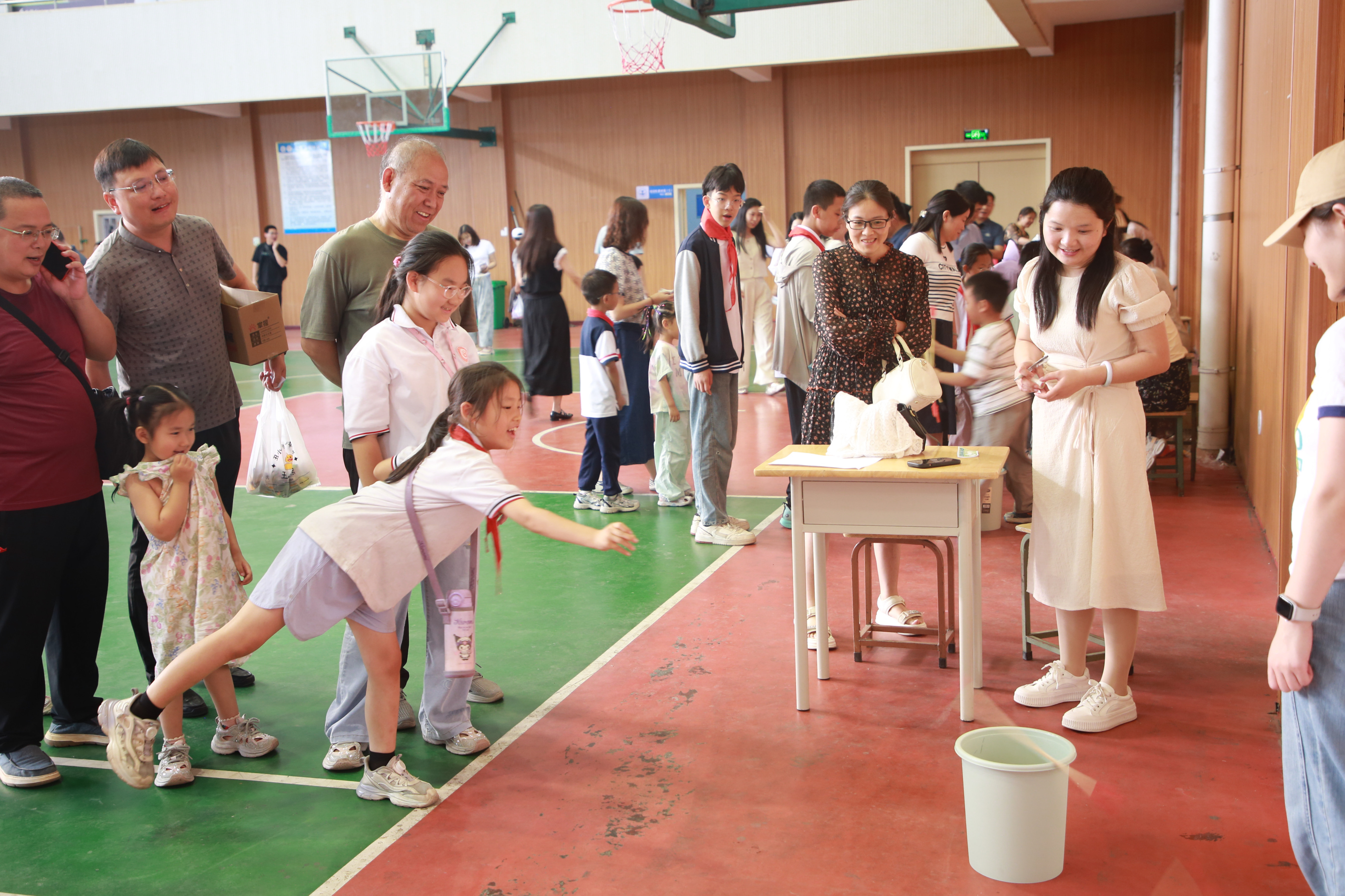 活动现场,校医全程值守,准备了创可贴、消毒喷雾等应急药物;志愿教师坚守岗位,用亲切的微笑和话语维持秩序;负责兑换奖品的工会委员和工作人员更是忙得不亦乐乎。