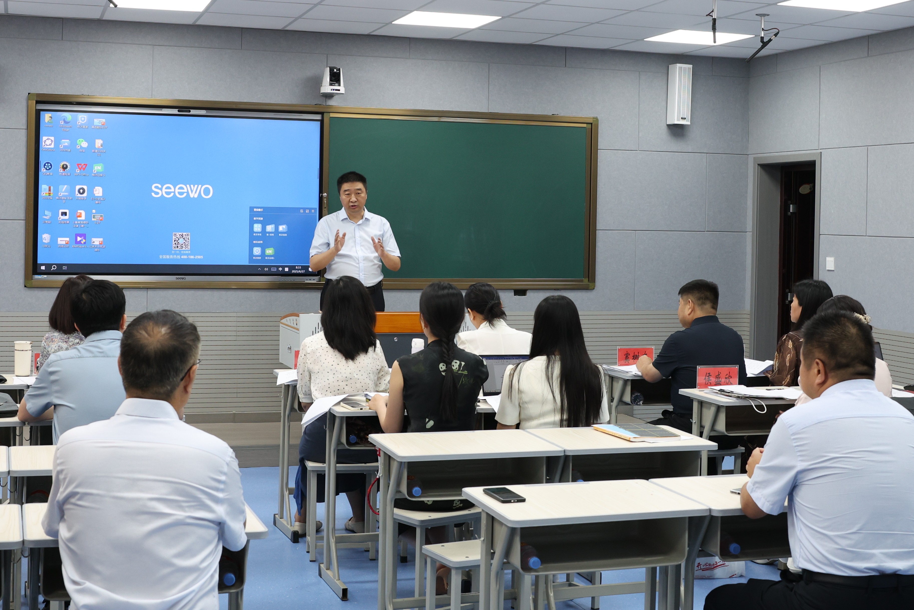 6月27日,河南省参加今年第五届全国中小学青教赛的5位选手齐聚我校,进行集中培训与磨课活动。此次活动由河南省教科文卫体工会主办,新乡市产业工会承办,地点设在我校一号录播教室。省教科文卫体工会主席张学勇亲临指导,我校校长李杰明,校党委副书记、纪委书记兼工会主席刘齐晋等与市总工会有关领导一起陪同听课并参与活动。