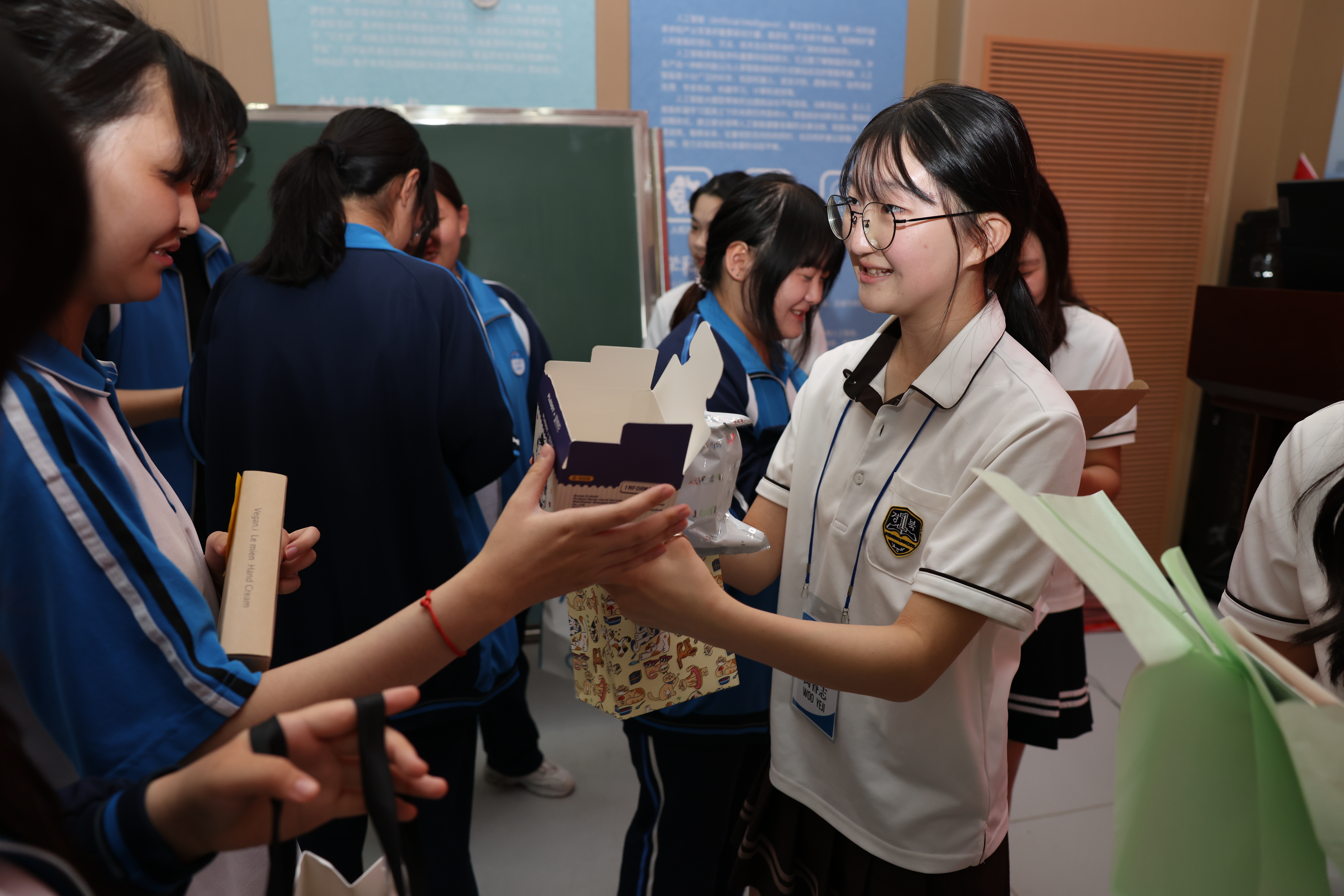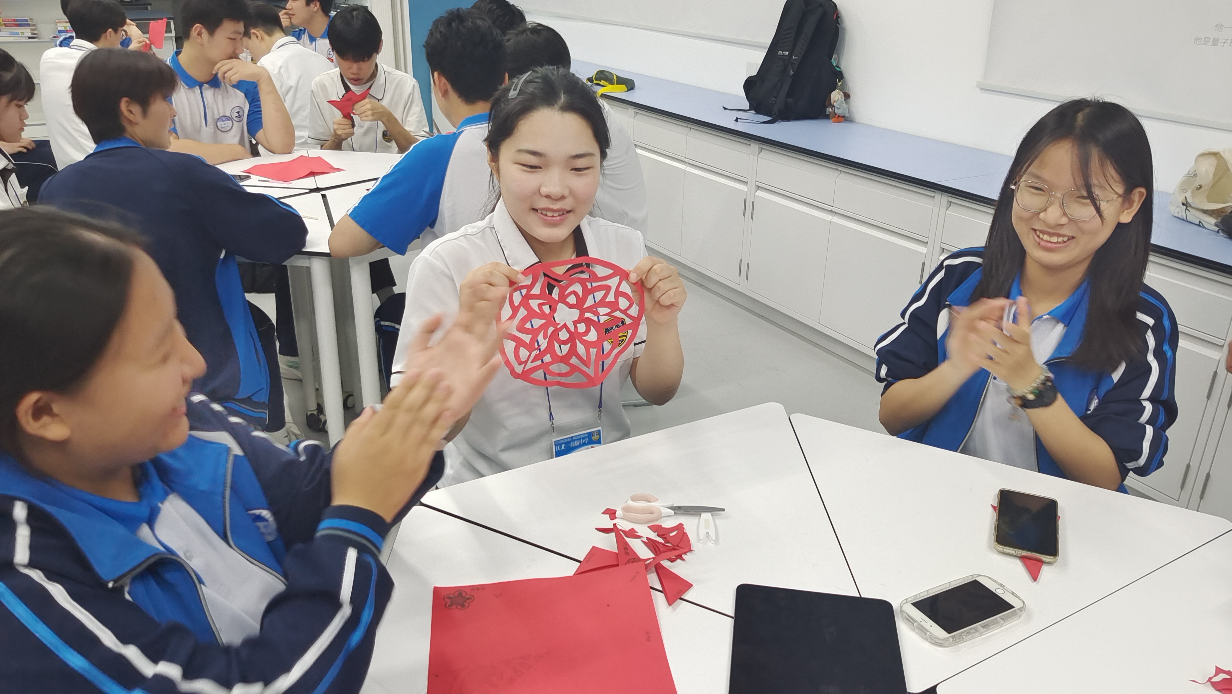 随后,两位校长共同签署姊妹学校合作协议,并互赠牌匾和礼品。在中韩同学合唱两国歌曲中,活动推向高潮。参加交流活动的中韩同学俩俩结对,赠送富有地域特色的纪念品,携手参观了学校校史馆,参观结束后一同体验中国非遗活动——剪纸,现场气氛热烈,韩国师生们自豪地展示自己的作品,感受中国传统文化的魅力。