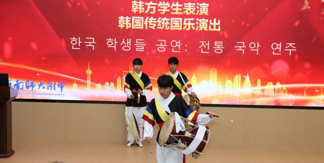 韩国学生以传统国乐《仗鼓》献艺回礼,铿锵有力的鼓点与激昂的旋律交织,既展现了韩国传统艺术的独特魅力,又传递出对东道主热情款待的诚挚谢意。