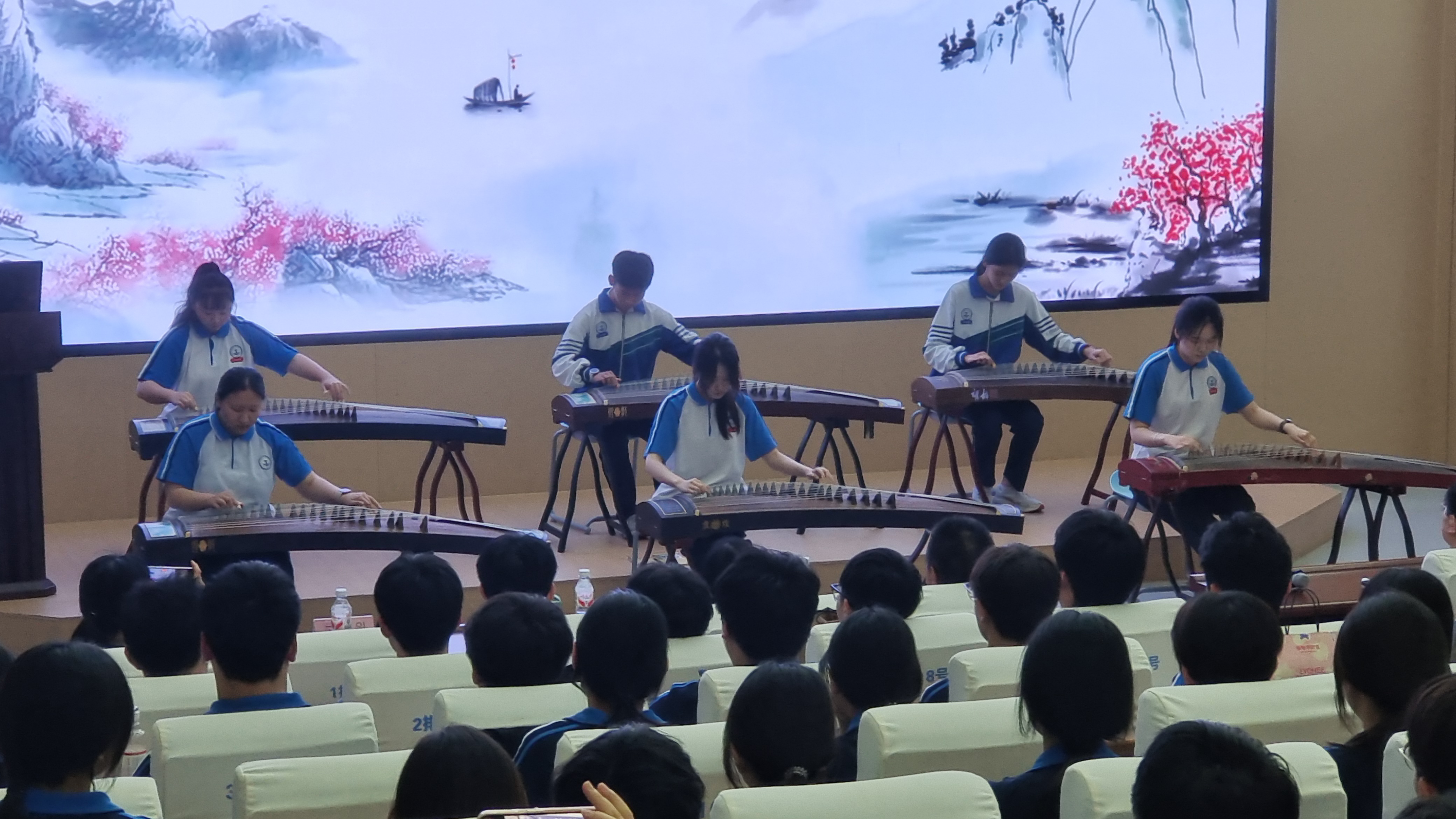 上午 9 时30分,欢迎仪式在我校实验楼阶梯教室举行。在欢迎仪式上,我校学生以悠扬的古筝曲《渔舟唱晚》作为友谊的桥梁,用动人的旋律代替语言,向远道而来的韩国朋友们致以最诚挚的欢迎。这首描绘夕阳下渔舟归航的经典曲目,不仅展现了中国传统音乐的魅力,更寄托了我们对中韩友谊的美好祝愿。