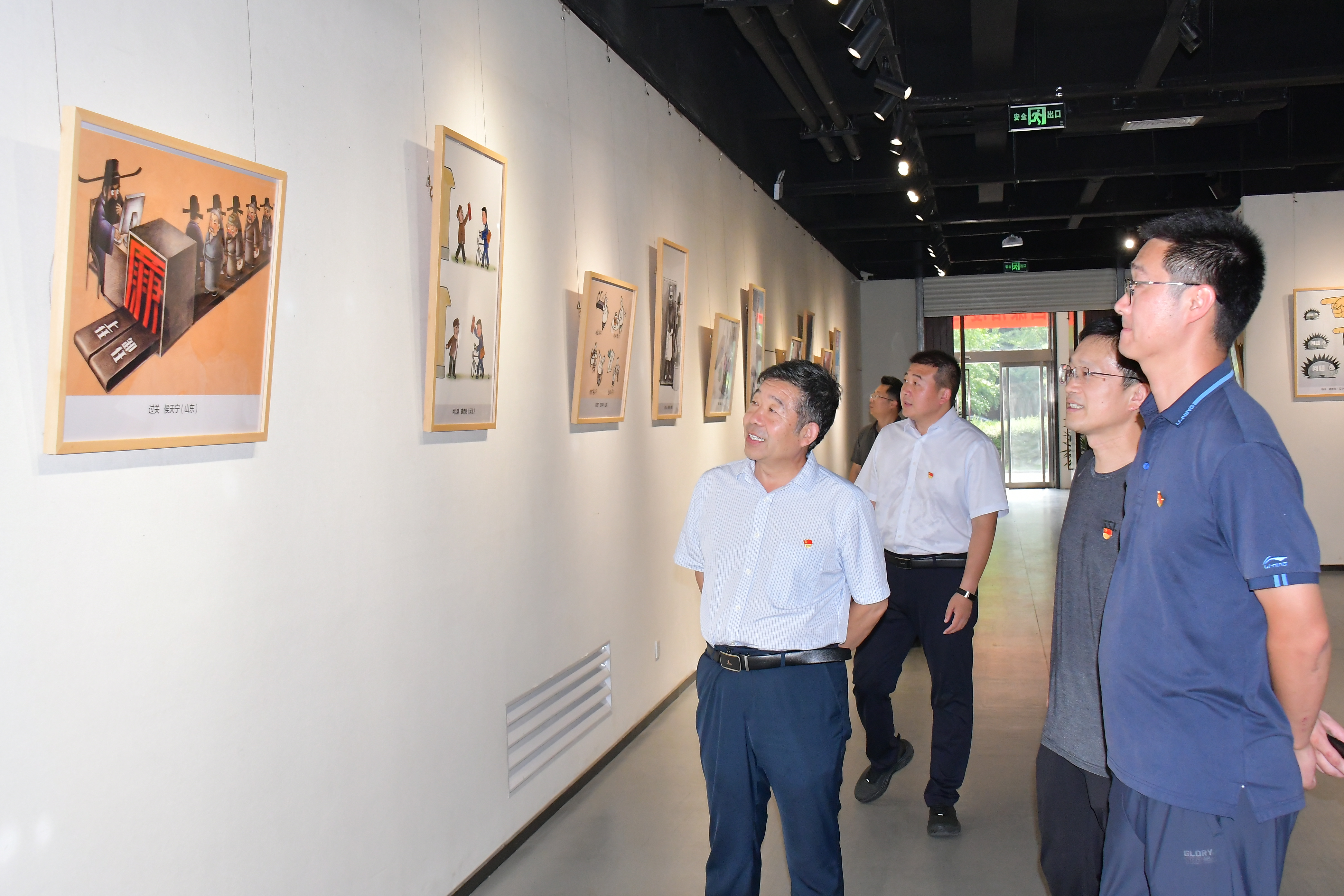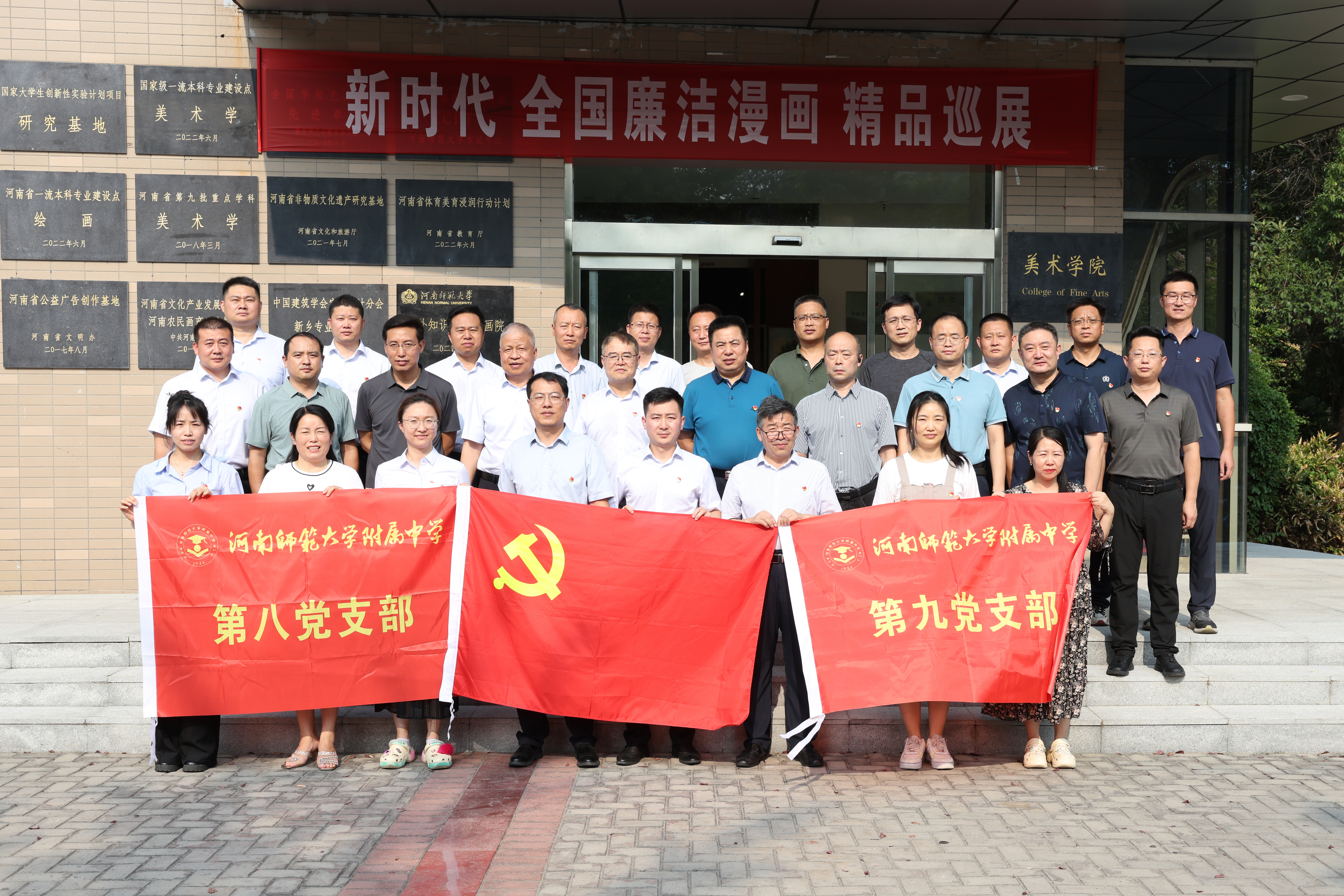 为持续推进深入贯彻中央八项规定精神学习教育走深走实,进一步增强党员干部和广大教师廉洁自律、廉洁从教意识,大力营造崇廉拒腐的良好风尚,7月10日,校党委书记张银付,校党委副书记、纪委书记、工会主席刘齐晋带队,组织基层党支部党员赴河南师范大学美术馆参观新时代全国廉洁漫画精品展。河南师范大学美术学院党委书记华锋陪同参观并作相关讲解。