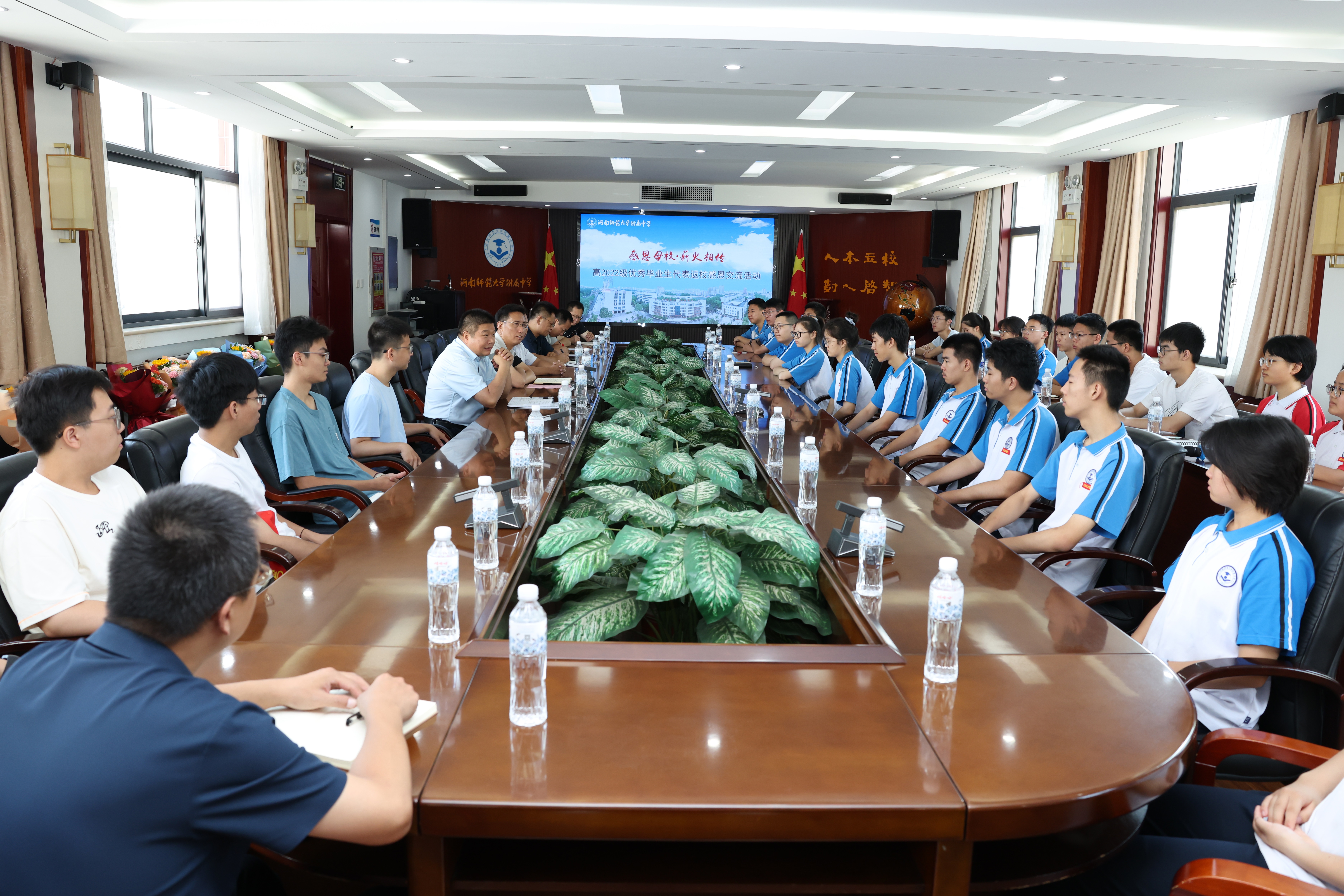 2025年7月29日上午,河南师大附中在办公楼第二会议室隆重举行高2022级优秀毕业生代表返校感恩交流活动。活动以“感恩母校·薪火相传”为主题,旨在搭建毕业生与母校的情感桥梁,传递感恩情怀,同时通过优秀学子的经验分享激励在校学生奋发向上。河南师大附中校长李杰明、实验部主任汪才安、招生办主任吴向辉、实验部副主任张自发、毕业年级教师代表及新高一、新高二和新高三师生代表等50余人参与活动,现场气氛温馨而热烈。活动由实验部主任汪才安主持。