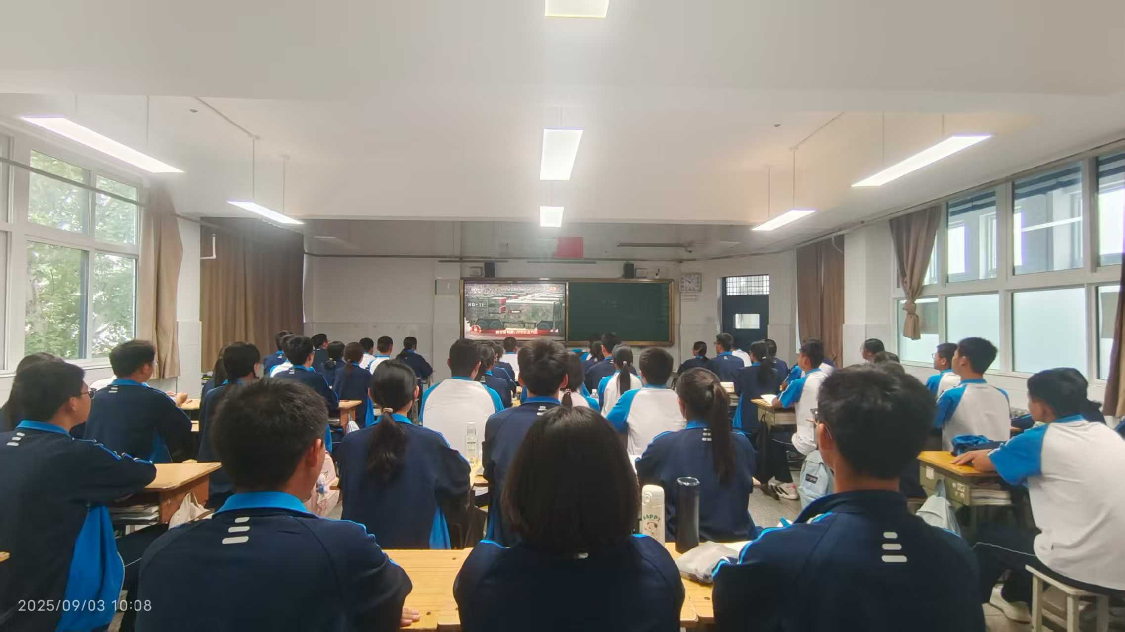 铁流滚滚,鹰击长空,9月3日上午,北京天安门广场举行的盛大阅兵仪式,不仅是一场国家力量的庄严展示,更是一堂震撼人心的爱国主义思政课。在这个具有特殊历史意义的日子——中国人民抗日战争暨世界反法西斯战争胜利80周年纪念日,高中部高一年级全体师生共同观看了阅兵仪式直播,见证大国崛起的磅礴力量,传承穿越烽火的永恒荣光,通过学习习总书记重要讲话、感受国家军事发展等环节,深入开展爱国主义教育。