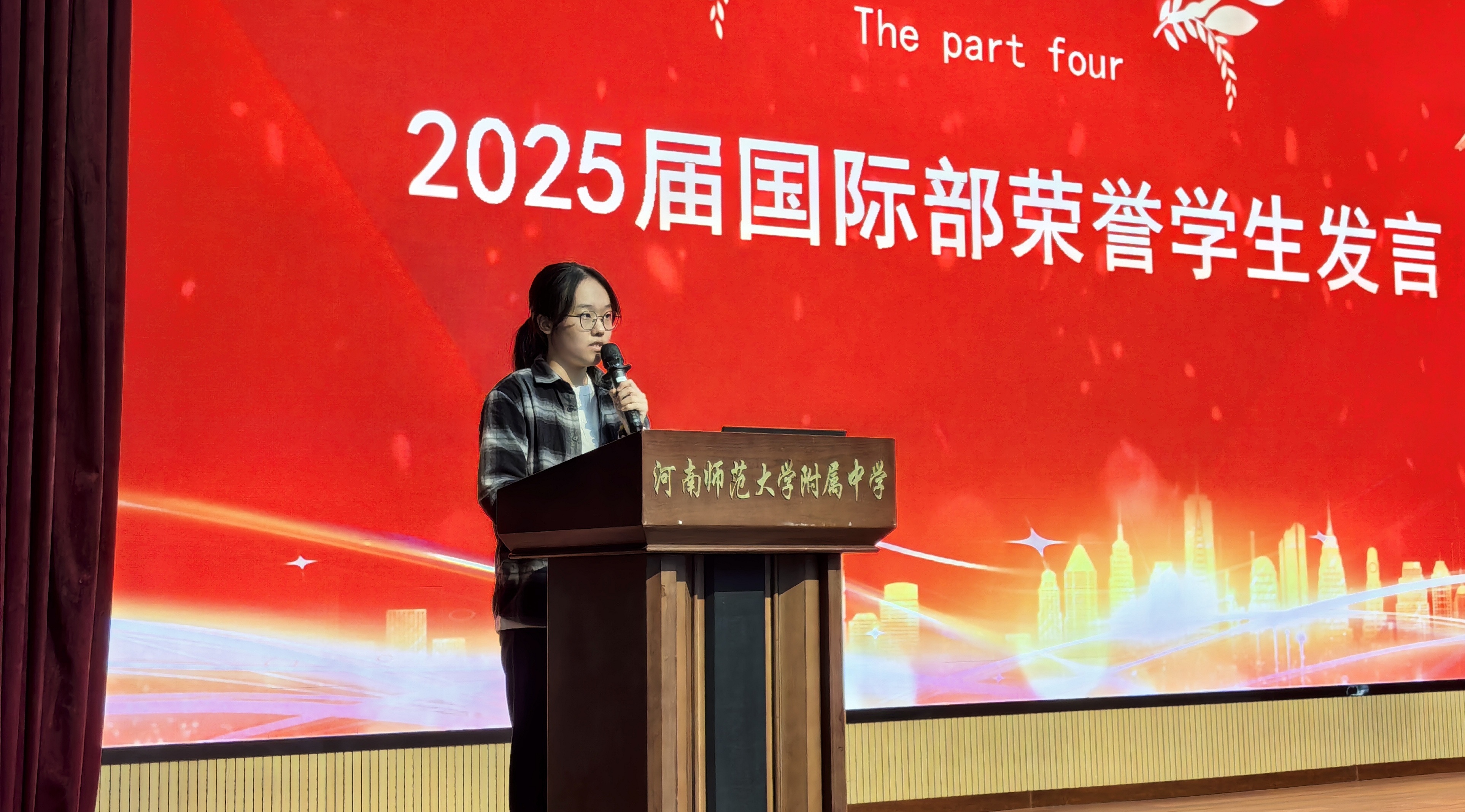 荣誉是认可,更是前行的动力。2025届荣誉学生刘馨语作为获奖代表,进行发言,分享了自己在国际部的学习心得与成长感悟,字里行间满是对未来的期许,激励着在场同学以梦为马、不负韶华。