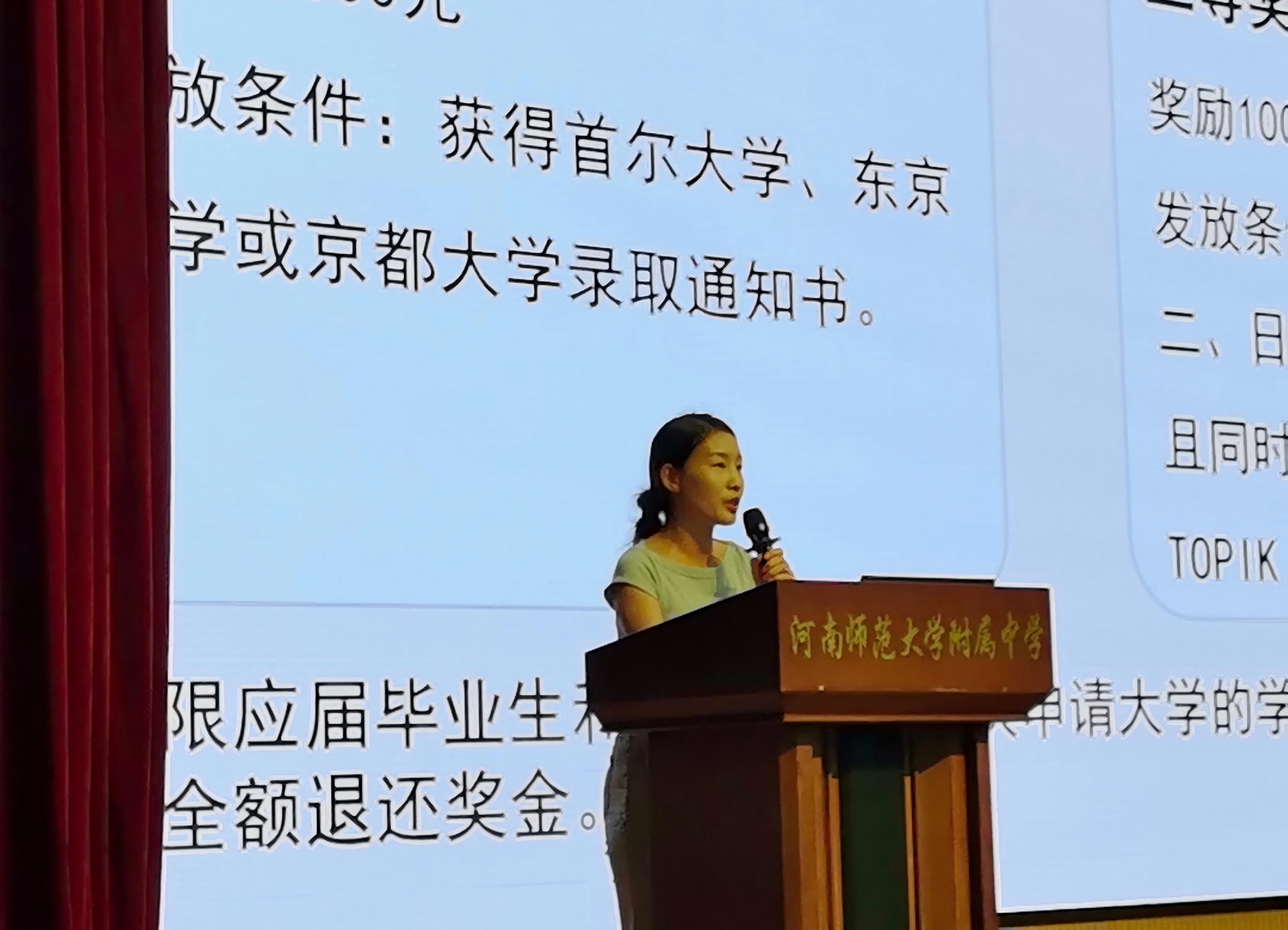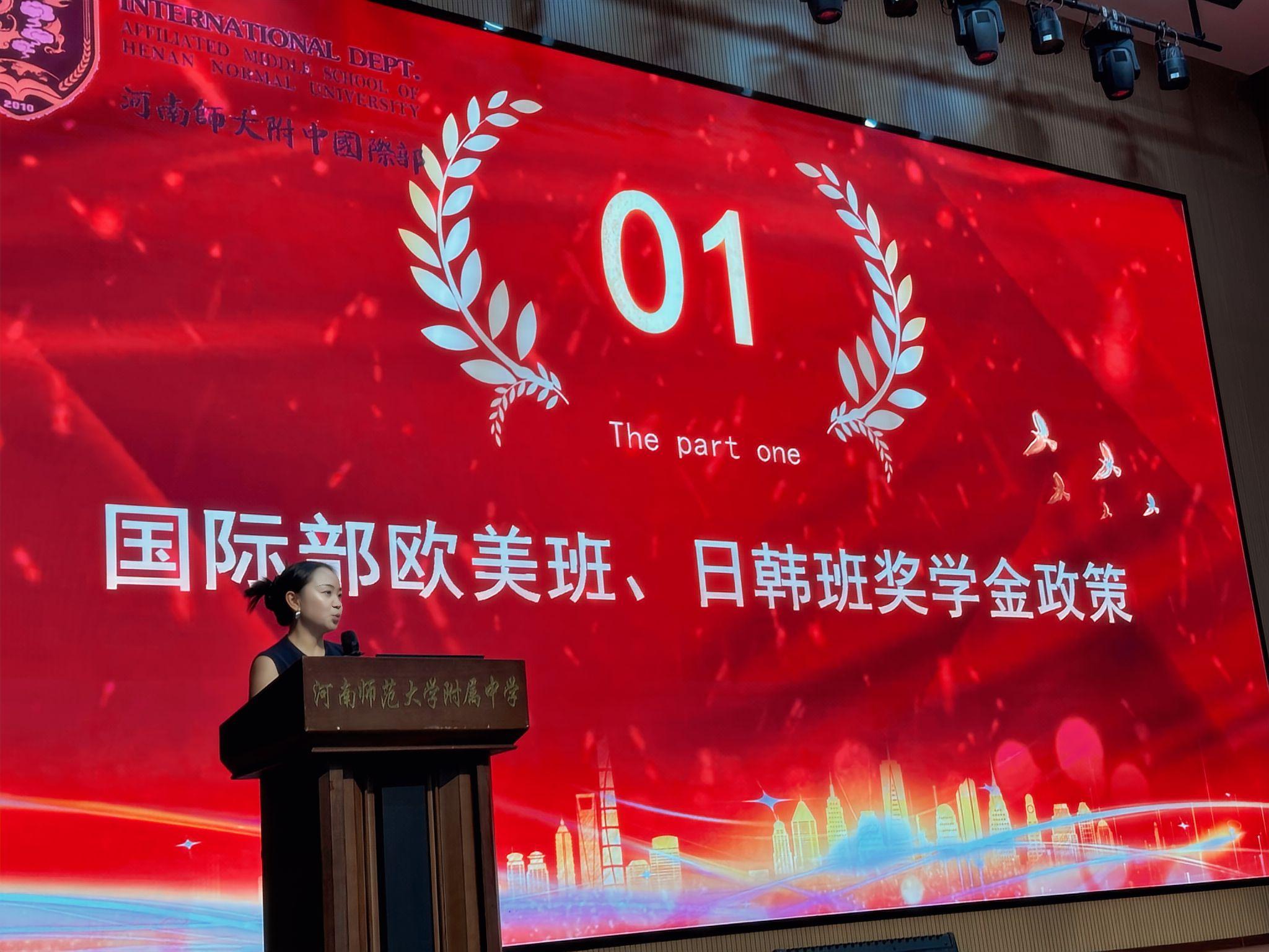 大会伊始,杜伟洁老师、张梦老师分别解读了国际部欧美班和日韩班奖学金政策,从学习优秀奖到荣誉学生奖,清晰的奖项标准与丰厚的奖励设置,为同学们指明了奋斗方向。