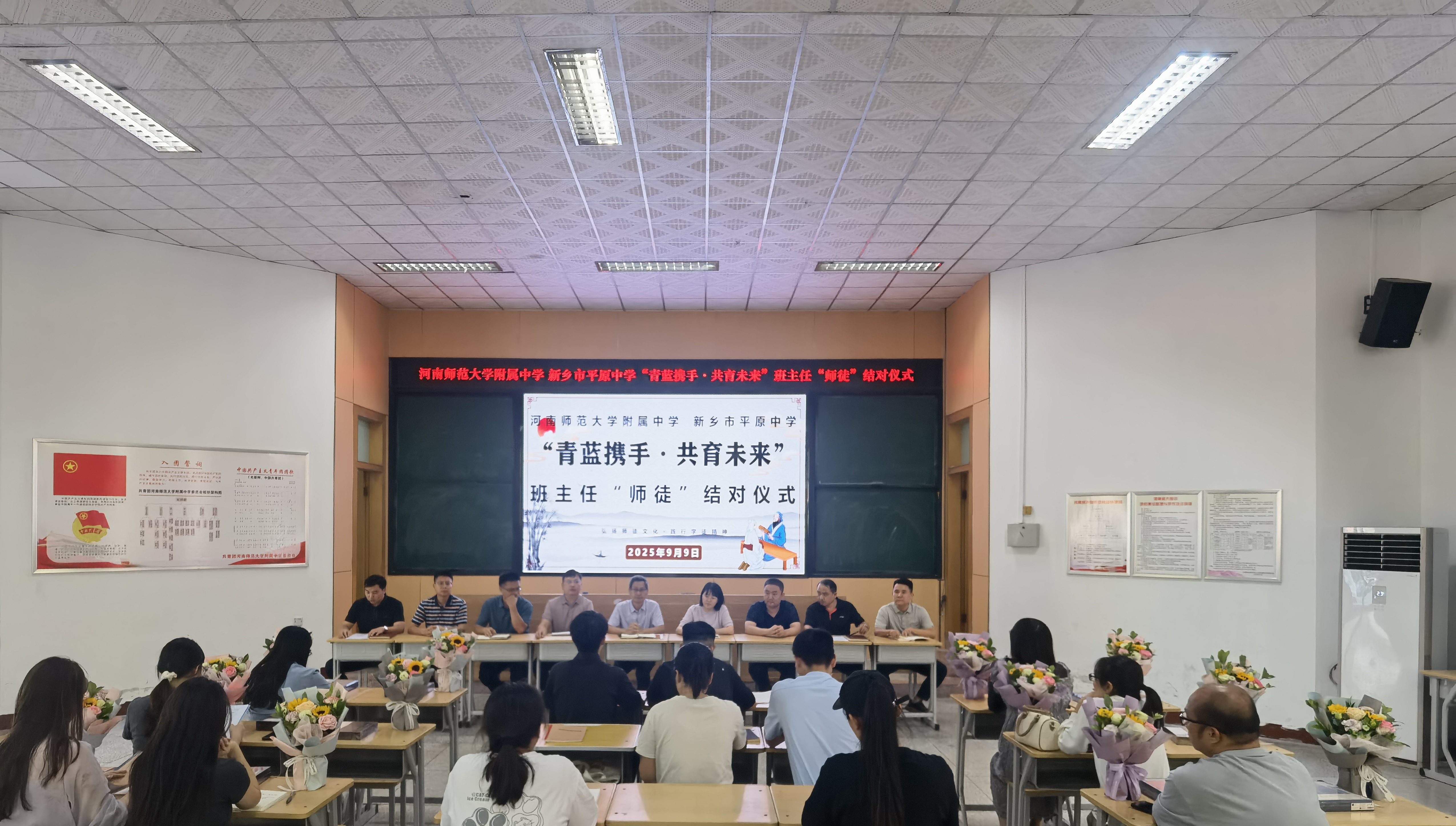 为进一步加强教师队伍建设,促进青年教师快速成长,充分发挥骨干教师的“传、帮、带”作用,9月9日,平原中学初2025级举行“青蓝携手同行 共谱教育华章”师徒结对仪式。新乡市平原中学党总支书记刘志强,副校长段世宇,李沙沙,河师大附中党办主任都温中,初中部主任周晋阳,副主任刘晨曦,任志福,年级主任刘宸鸣及初2025级全体班主任参加结对仪式,活动由年级副主任李钦主持。