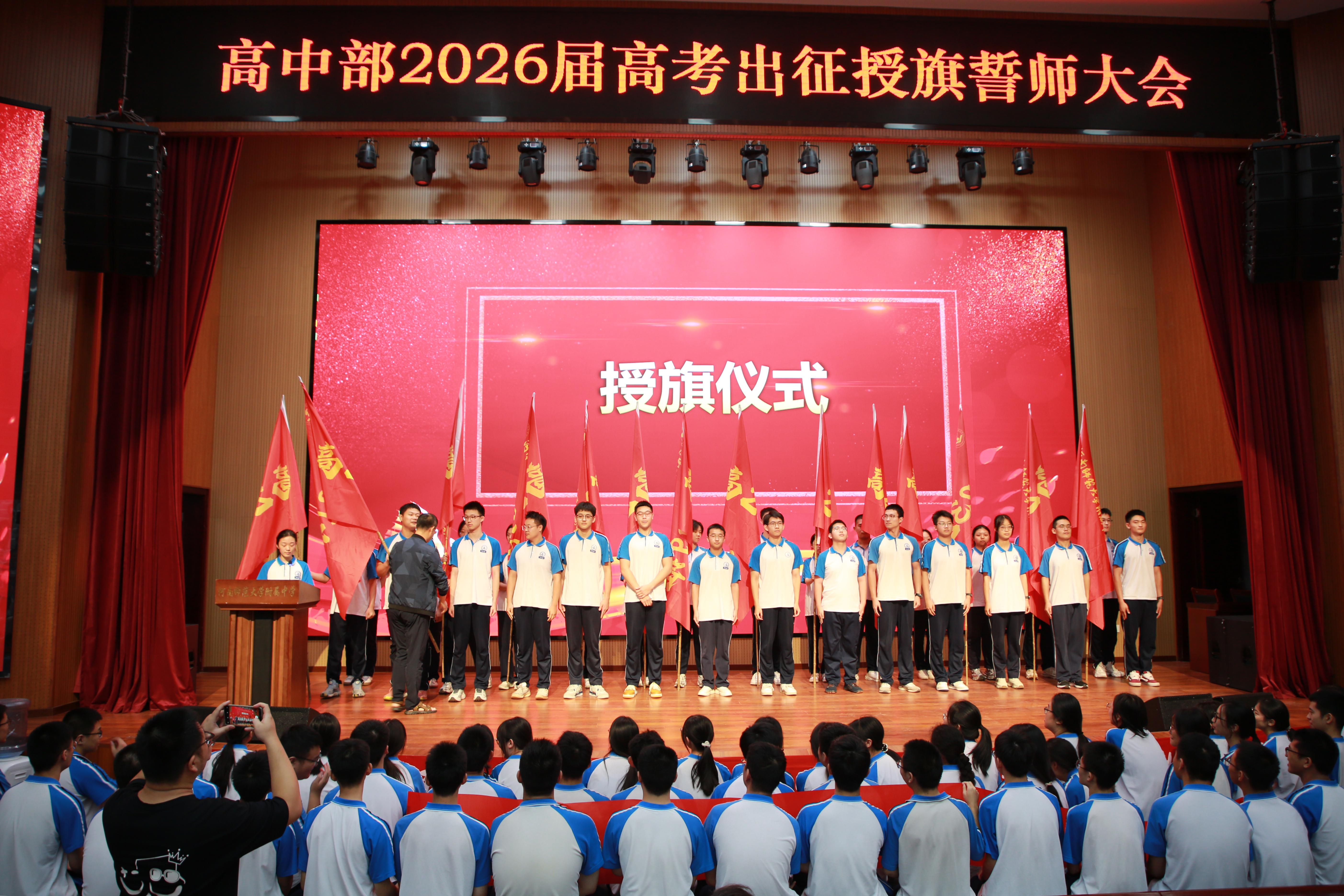战旗为号,誓言为心。相信2026届高三学子必将怀揣星辰大海,以汗水为墨,挥毫于高考的答卷,最终攀上人生的新高峰,为母校荣耀再添璀璨星光!