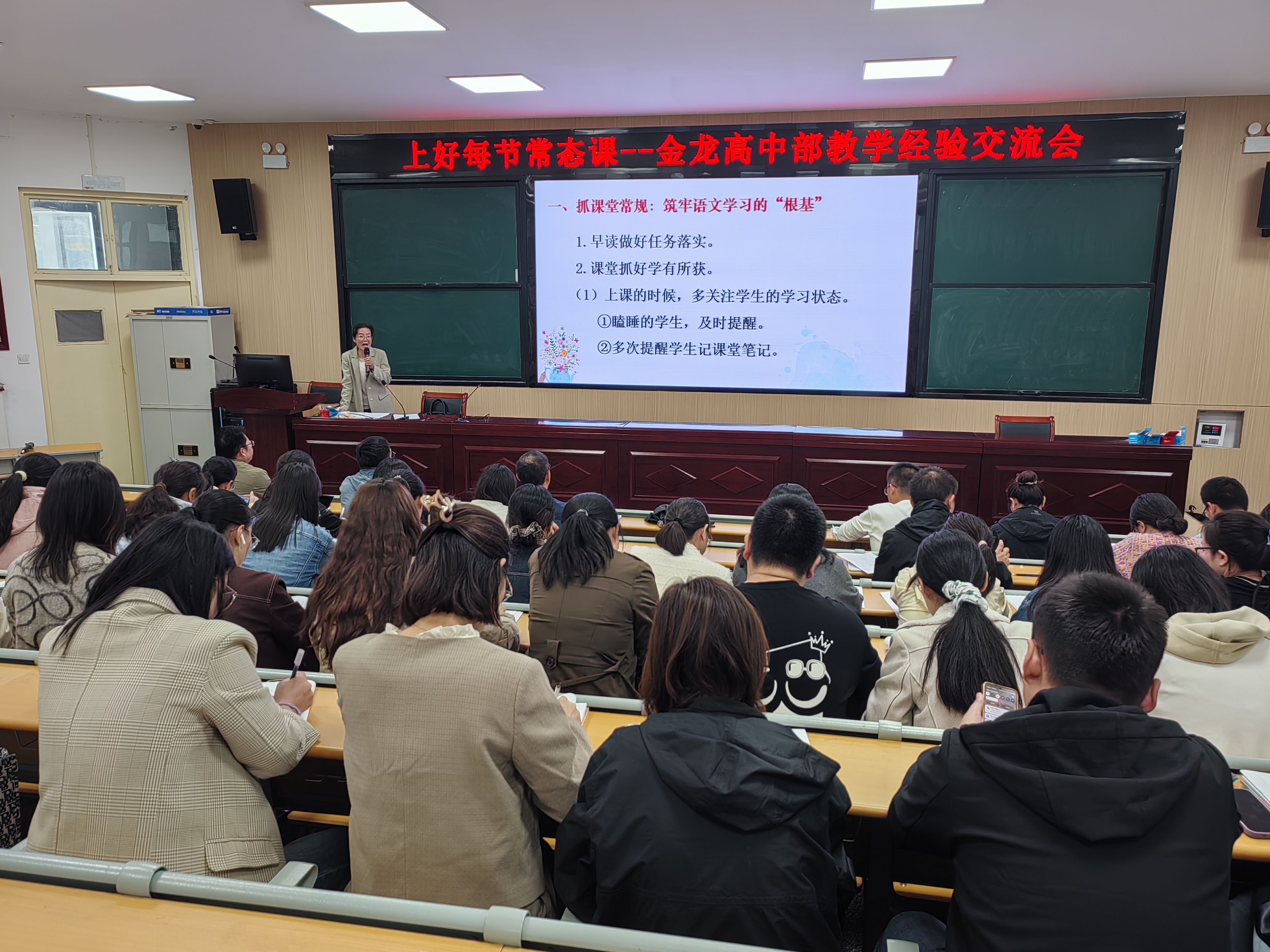 为积极响应教育局关于“提升教学质量——上好每节常态课”的号召,我校高中部于9月23日开展了以“夯实教学根基、提升课堂质效”为核心的教学经验交流会。高中部主任刘毅,副主任李忠堂、刘付生出席活动,语文备课组长赵雪老师作优质教学经验分享。