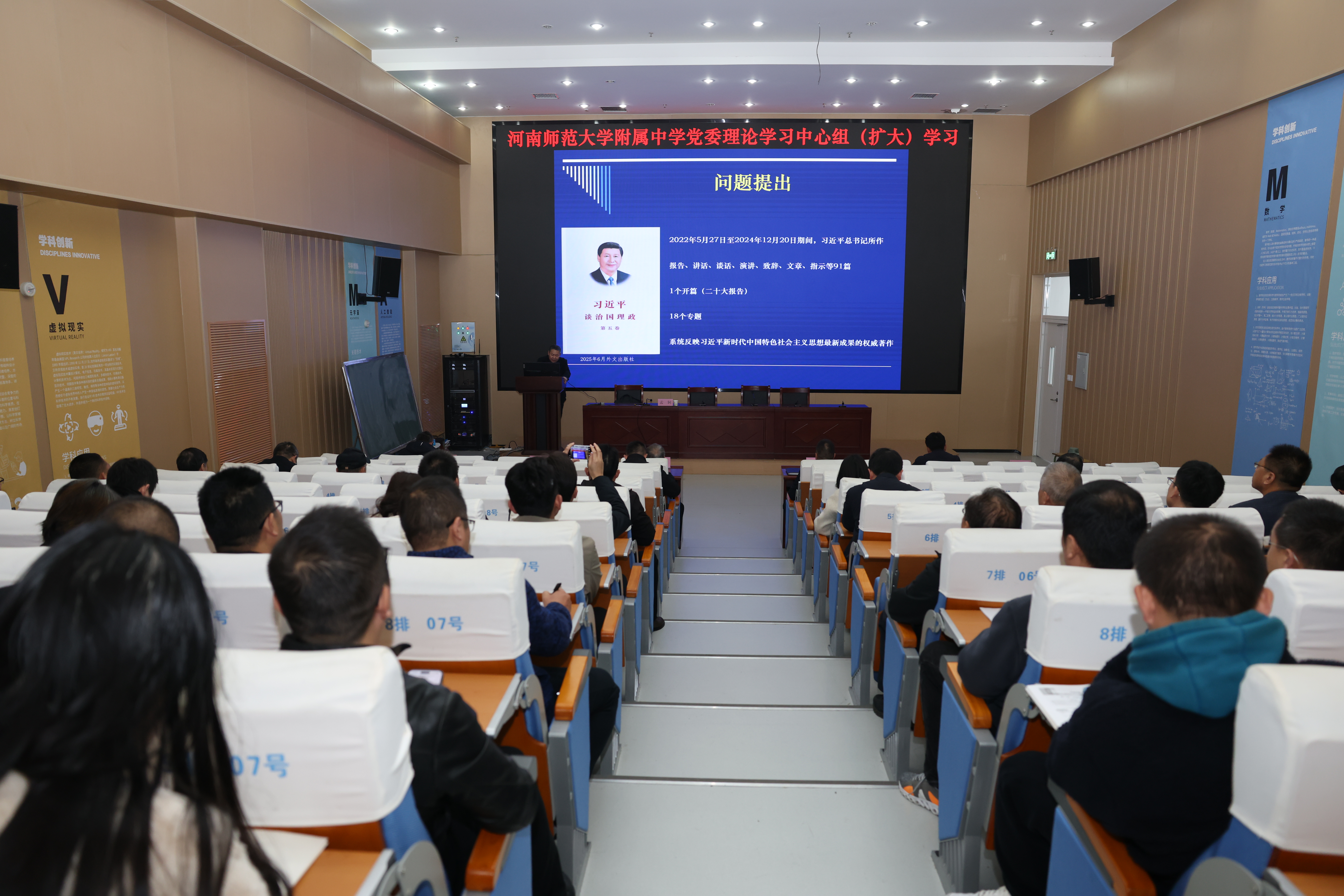 10月31日下午,我校召开党委理论学习中心组(扩大)学习会议,专题学习《习近平谈治国理政》第五卷和党的二十届四中全会精神。校领导李杰明、刘齐晋、杨呈杰、陈景任、侯伟,中层干部,党支部书记、支部委员,年级主任,教研组长参加学习。校长李杰明主持会议并讲话。