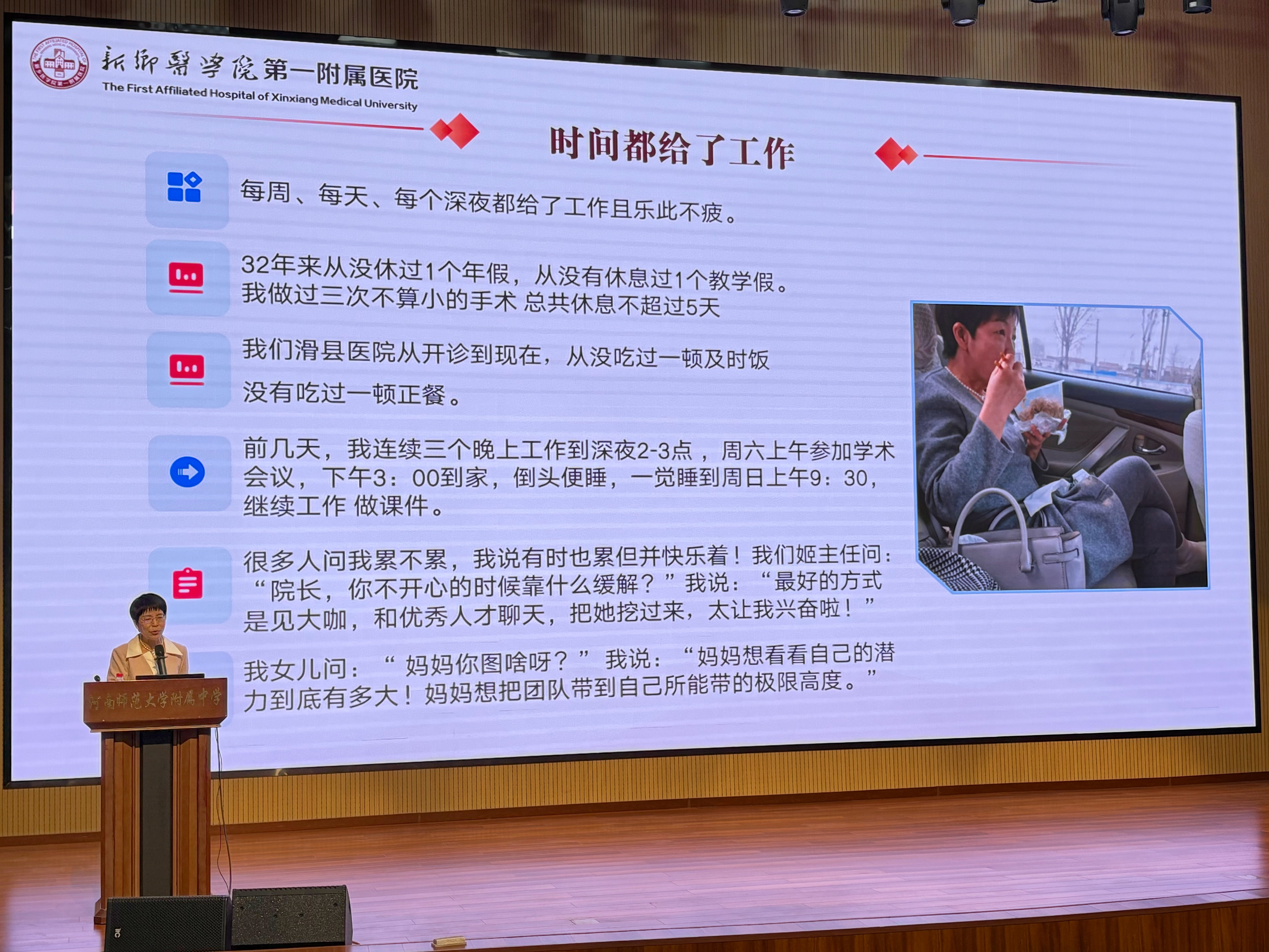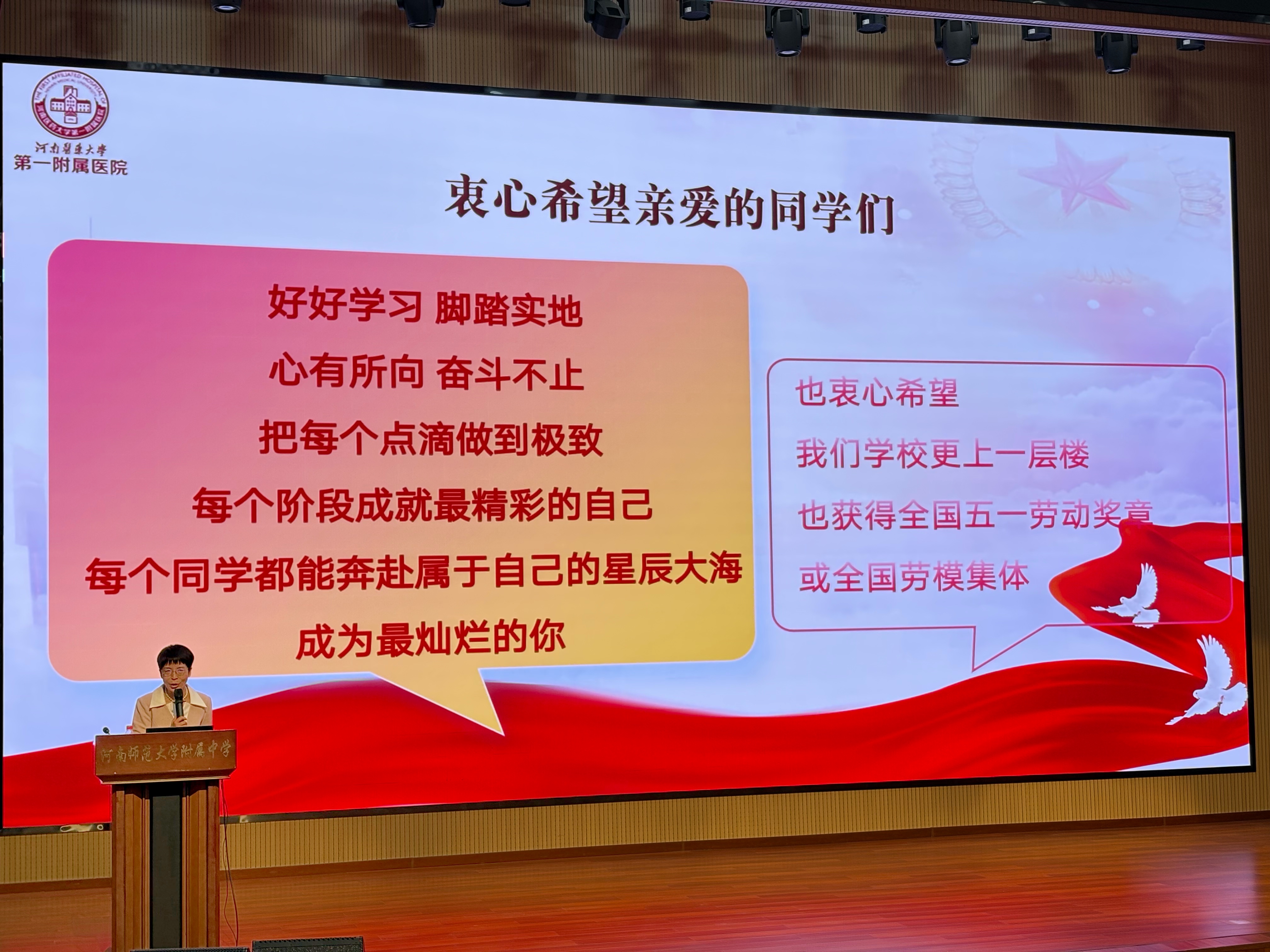 路教授以《心有所向 劳有所成》为题讲述了她和她带领的团队扎根医疗一线,夜以继日,奋斗不息的历程。她以实干经历诠释责任担当,通过换道超车直面医疗专业领域的前沿,以创新突破取得傲人业绩,用专业见解展现劳动者的卓越风采。路教授的讲述既让师生直观感受到医疗工作者的坚守与奉献,也为同学们未来的学习成长提供了宝贵指引。同时,作为国际部学生家长,路平教授的分享也让同学们深刻意识到,父母平凡的外表下藏着怎样的坚持与拼搏,自己的父母正是值得我们仰望和学习的榜样。