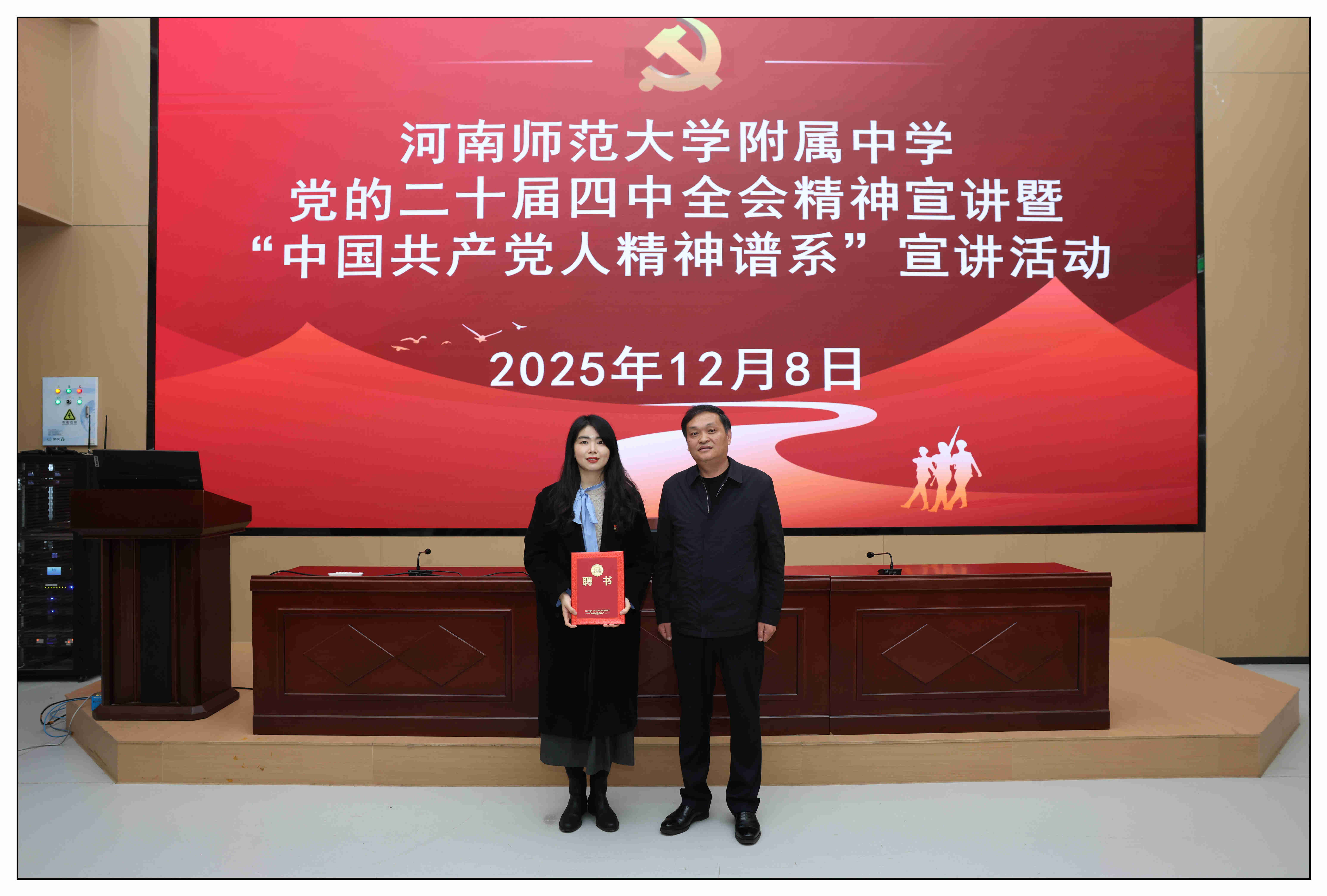 此次宣讲活动是我校深入学习贯彻党的二十届四中全会精神,推动中国共产党人精神谱系融入中学思政工作的具体行动,旨在引导广大师生深刻领会中国共产党人精神谱系的丰富内涵和时代价值,切实增强听党话、跟党走的思想自觉和行动自觉。接下来,我校将精心谋划、多措并举,把深入学习贯彻党的二十届四中全会精神与落实立德树人根本任务、建设高质量校本育人体系、办好人民满意的基础教育紧密结合起来,切实将学习成果转化为办学治校育人的突出成效,不断激发全校师生在高质量发展新征程中挺膺担当的责任感与使命感,为奋力谱写中原大地推进中国式现代化新篇章贡献附中力量。