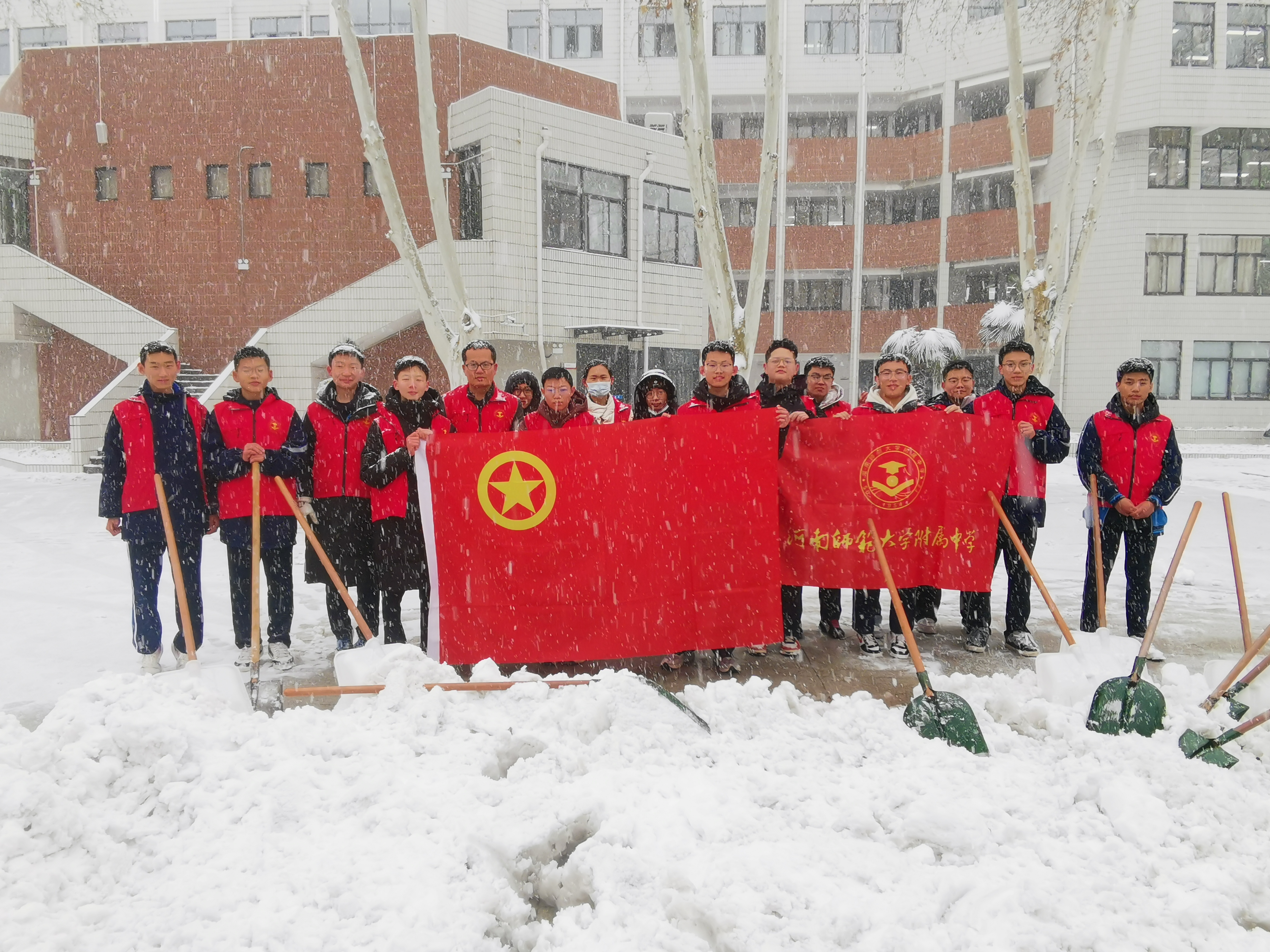 习近平总书记在致信祝贺中国志愿服务联合会第三届会员代表大会召开时强调,要“大力弘扬志愿精神传递真善美传播正能量,为强国建设民族复兴伟业贡献志愿服务力量”。我校高一年级此次扫雪志愿服务,正是对这一重要指示的校园践行。从守护校园平安的 “小服务”,到涵养志愿精神的 “大情怀”,师生们在付出中传递了真善美,在奉献中传播了正能量,让志愿服务精神在校园沃土中落地生根、开花结果。未来,学校也将继续以各类志愿服务活动为载体,引导更多师生投身志愿行列,将校园里的暖心善举延伸至更广阔的领域,为培育担当民族复兴大任的时代新人筑牢精神根基,为强国建设、民族复兴伟业汇聚起校园志愿服务的磅礴力量。