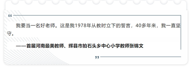 张锦文,男,汉族,中共党员,现任辉县市拍石头乡中心小学教师。从1978年参加教育工作至今,两次放弃走出大山的机会,44年坚守山区教育不动摇。