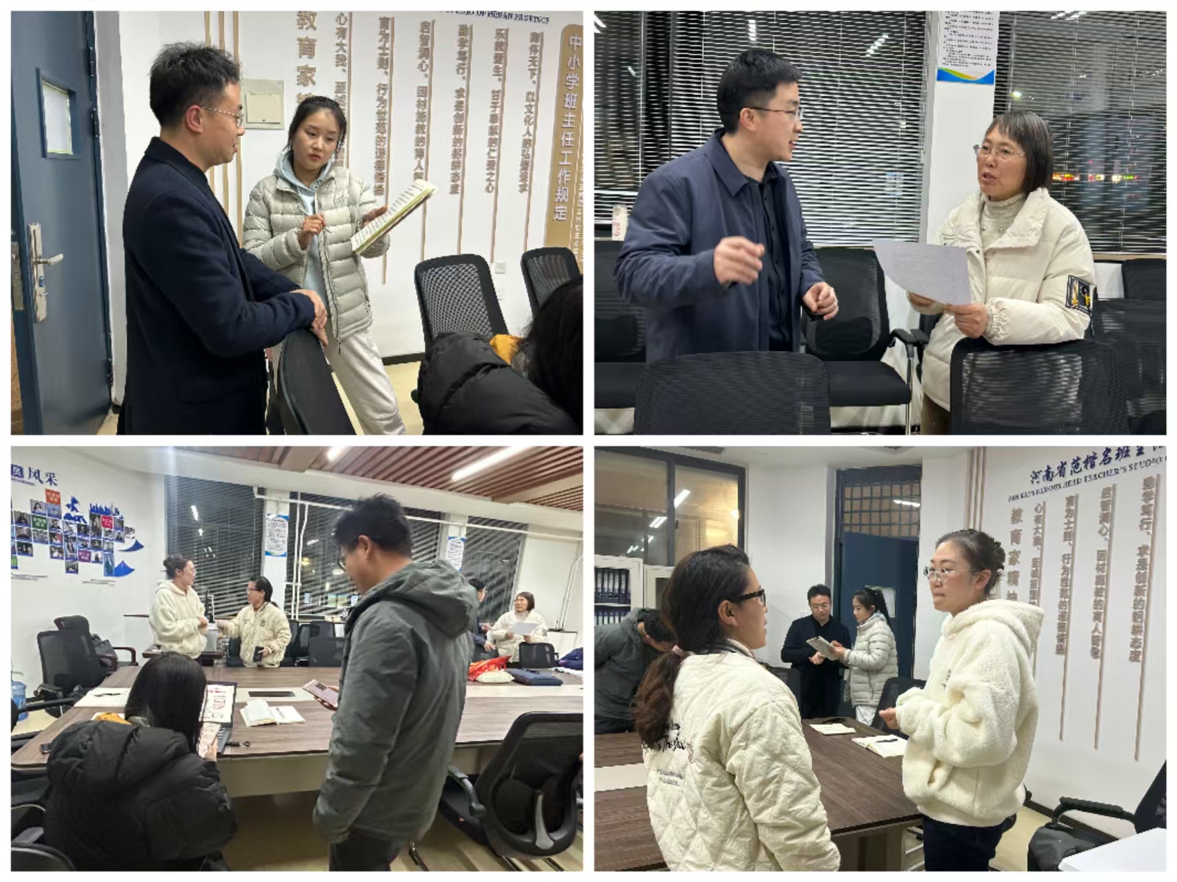 3月20日下午,河南省范楷名班主任工作室党员先锋岗在工作室举行新乡市第九届中小学班主任基本功展示交流活动赛前研磨活动。本次活动特邀新乡市名班主任工作室主持人王福东,河南省第八届中小学班主任基本功展示交流活动推荐案例获得者陈晓林,新乡市第七届中小学班主任基本功展示交流活动一等奖获得者刘天瑜担任指导嘉宾,和工作室主持人范楷老师聚焦河南师大附中、新乡市平原中学5位参赛选手,开展精准化、专业化赛前辅导,充分发挥党员先锋岗示范引领作用,助力参赛班主任锤炼过硬本领、展现良好风采。