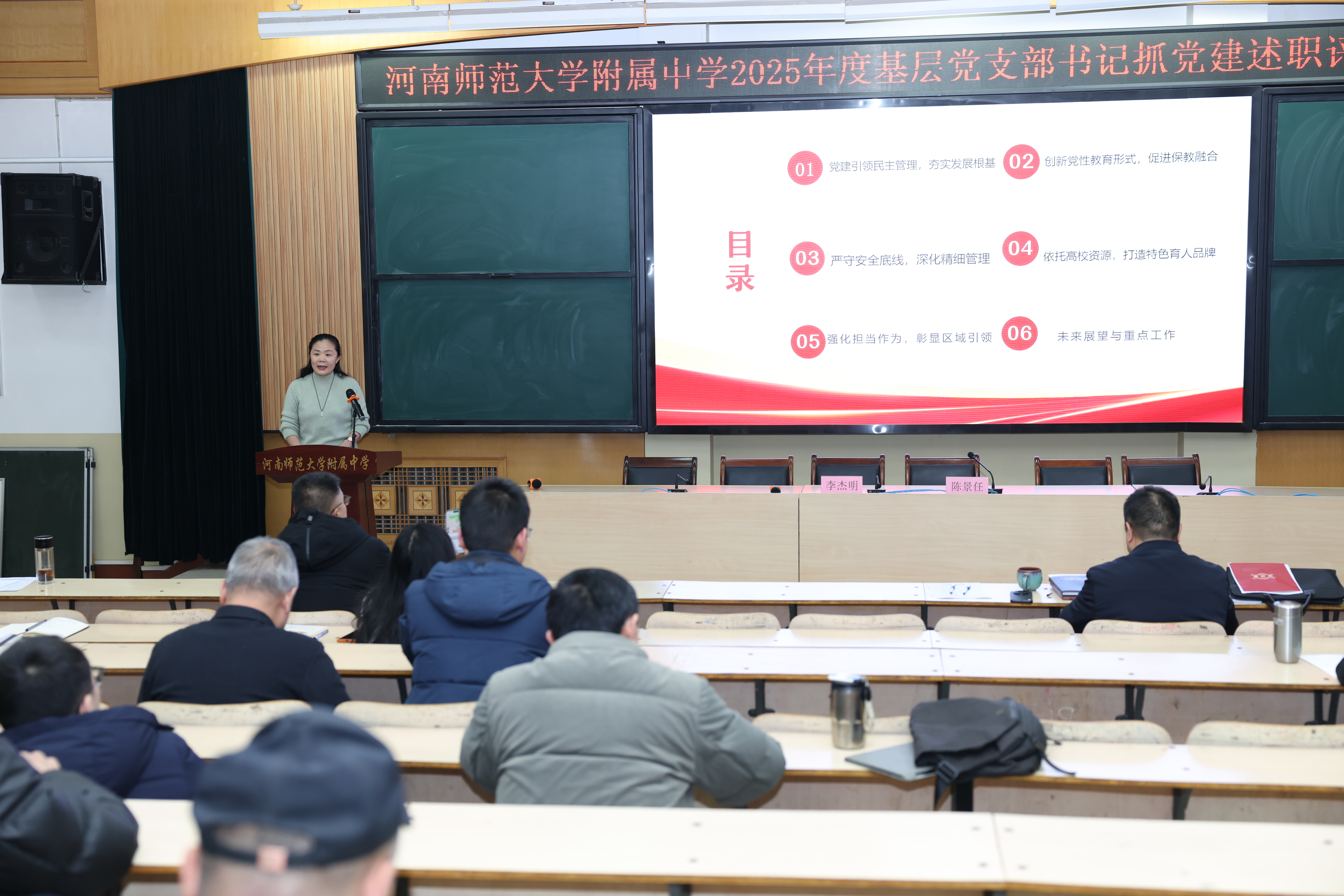 会上,19名党支部书记围绕2025年度履职工作特色亮点、存在问题、改进措施和下一步工作计划等方面依次进行现场述职汇报。述职内容实事求是、数据详实、重点突出,既总结成效,也直面短板,更明确方向,充分展现了我校各基层党支部立足教育教学主阵地、抓实抓细党建工作的责任担当。